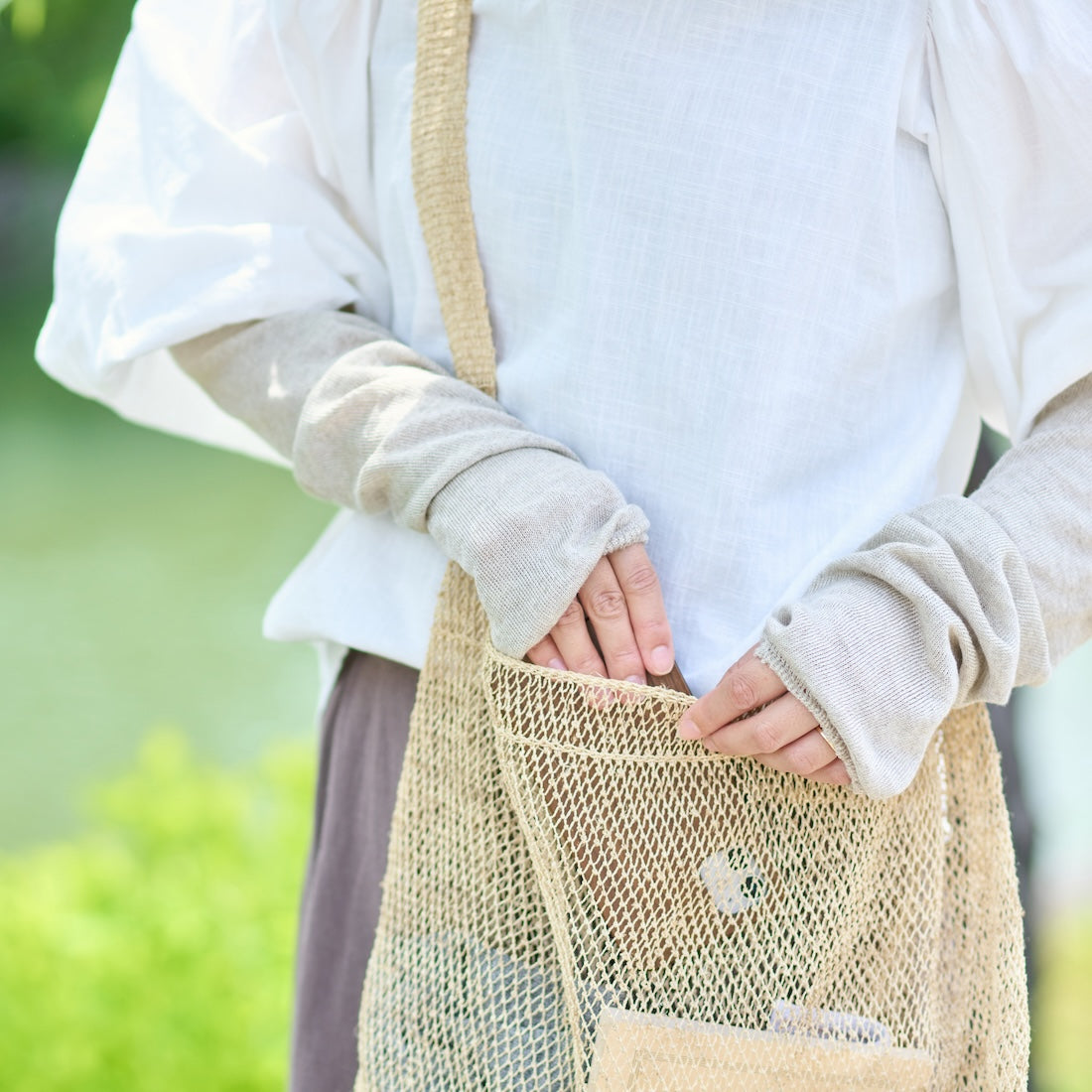 手の甲から二の腕まわりまですっぽり覆ってくれて、紫外線が気になる手の甲もふんわりとカバーしてくれます。