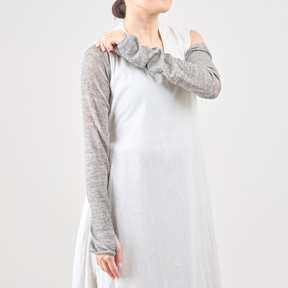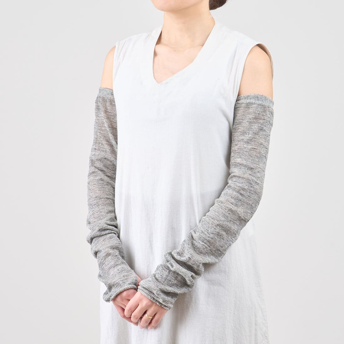 また、アームカバーの幅もゆったりと設計することで、腕にぴったりと密着せず、風通しの良い快適な着け心地に。