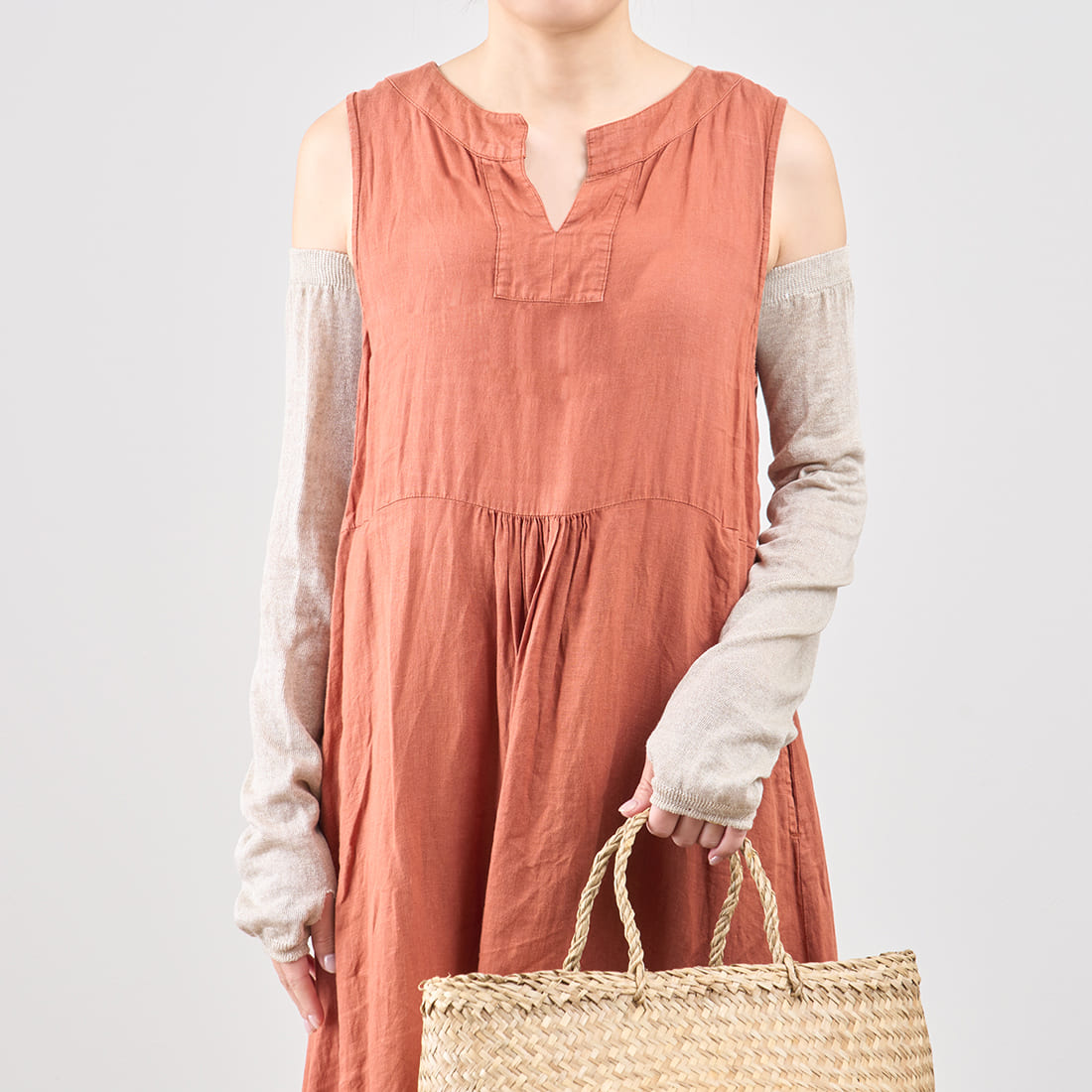 UVカット効果があるリネンとシルクで、紫外線から夏の素肌を守ります。