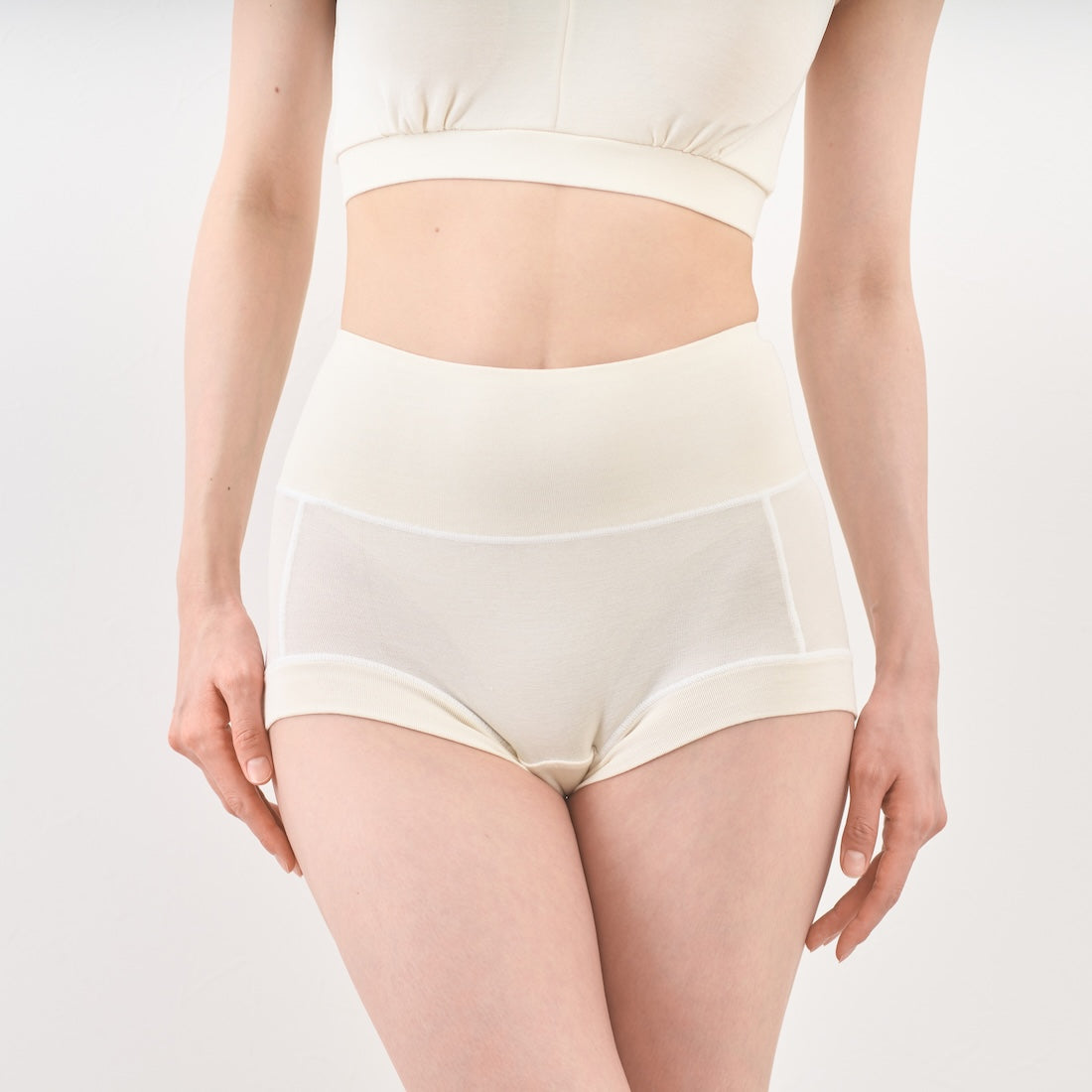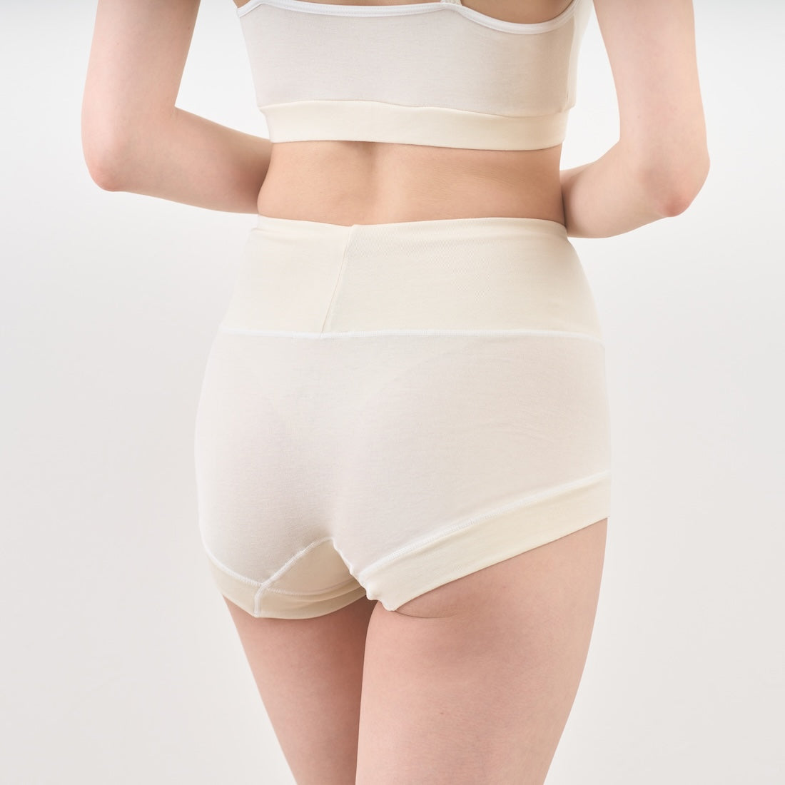 さらにハイウエストの設計が冷えやすいお腹まわりや大切なお尻を、ふんわりと安心感をもって包み込みます。