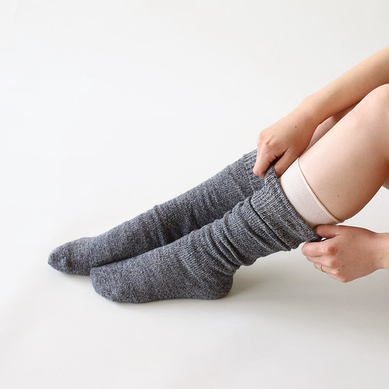 内側がシルク、外側がウールなので、1枚で履いても肌あたりがなめらかで心地よいですよ。
