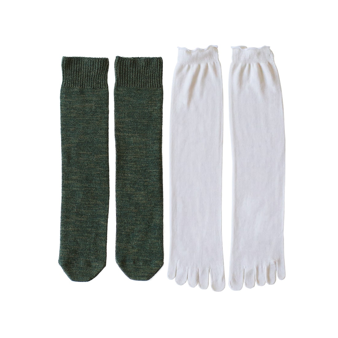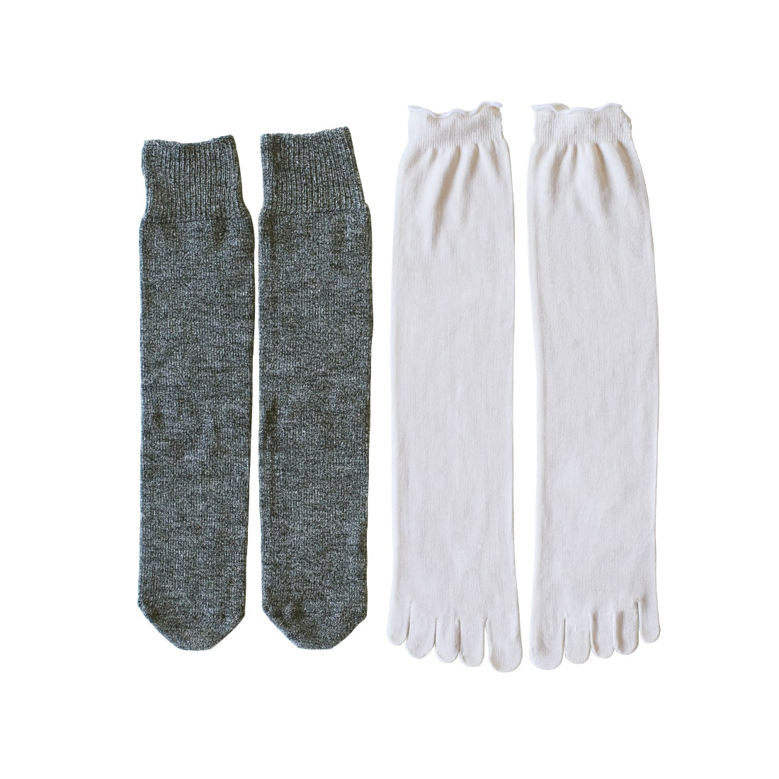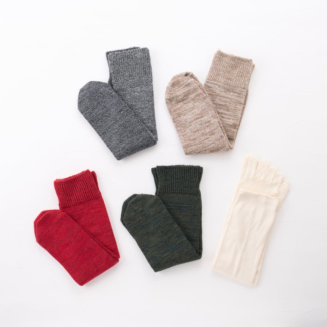 シルク5本指靴下の上に重ねていただくと、ぽかぽかと足元が温まります。