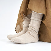 冷えとり靴下の一般的なカバーソックスは40cm前後のものが多いですが、くらしきぬでは試行錯誤を重ね、47cmの丈にこだわりました。