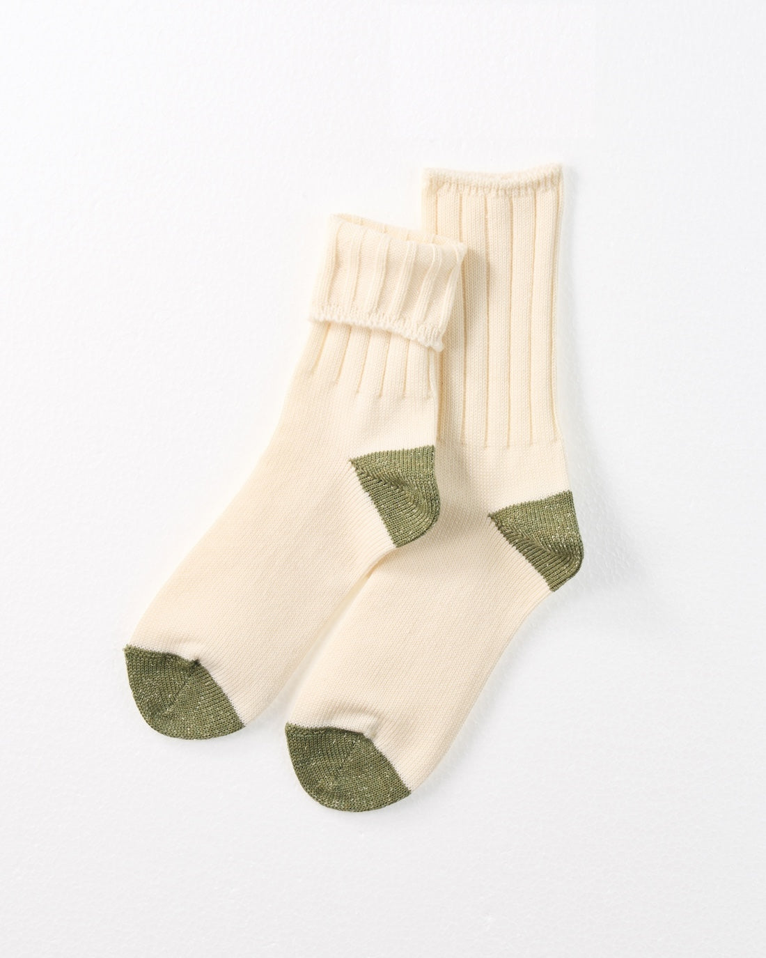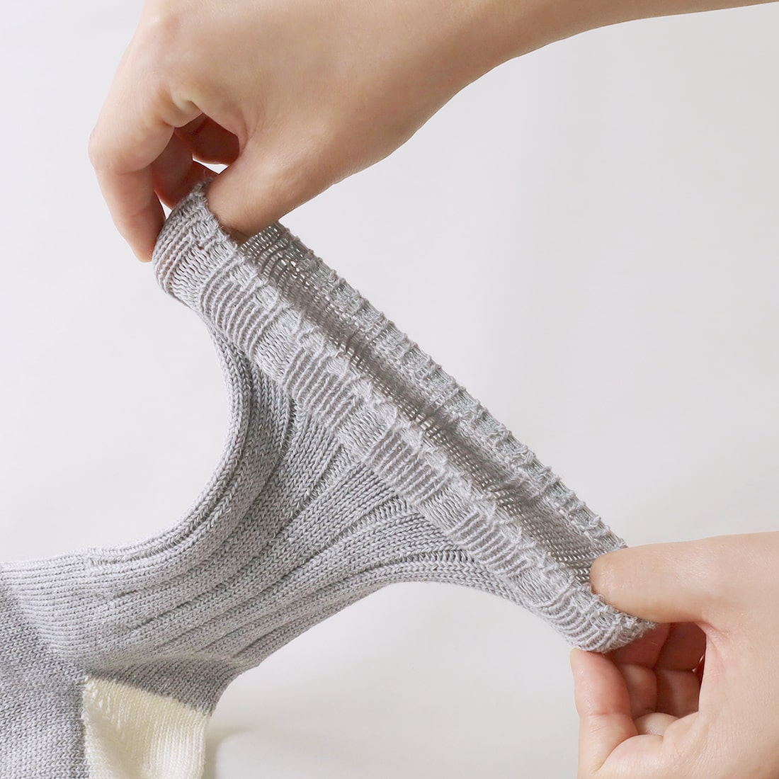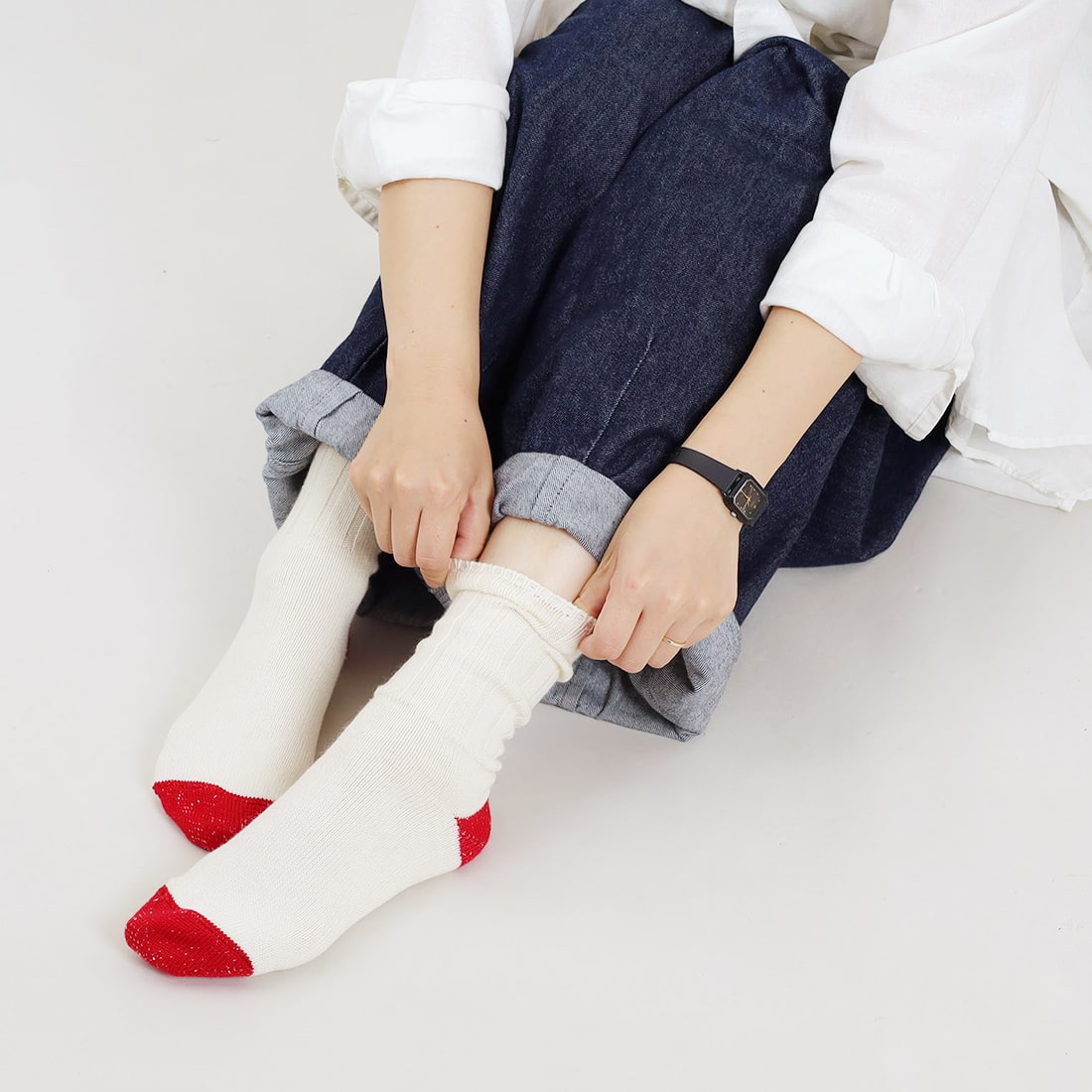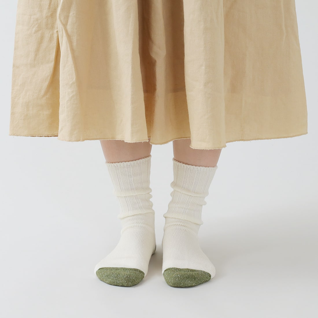 くらしきぬにはシンプルなデザインが多いですが、このバイカラー靴下は、シンプルな中にも遊び心が垣間見えるデザイン。
