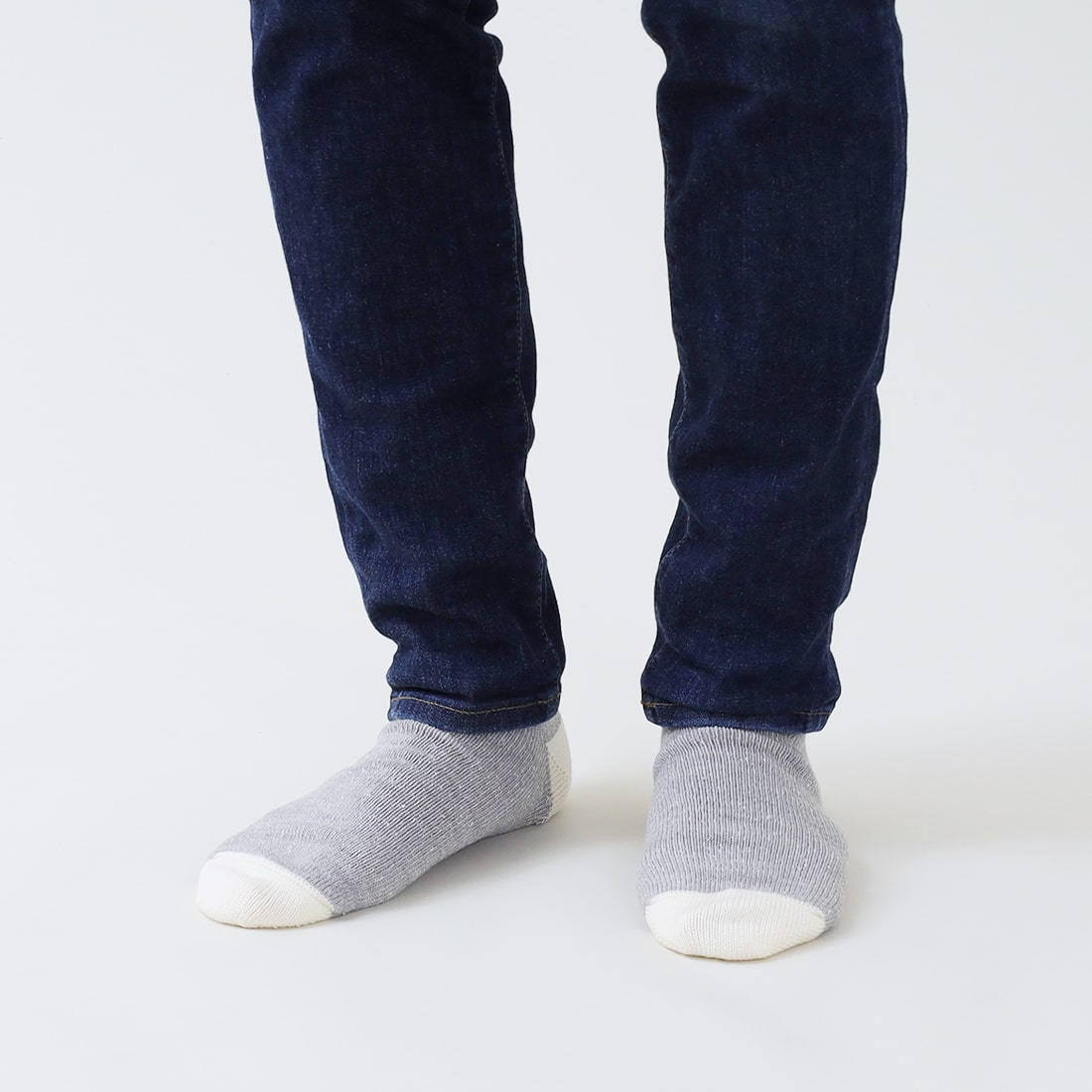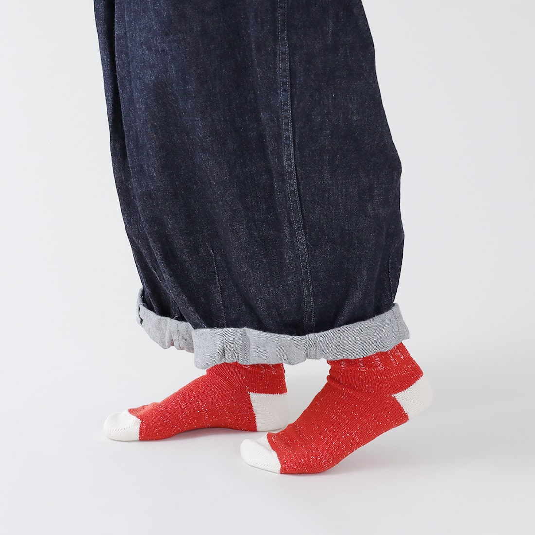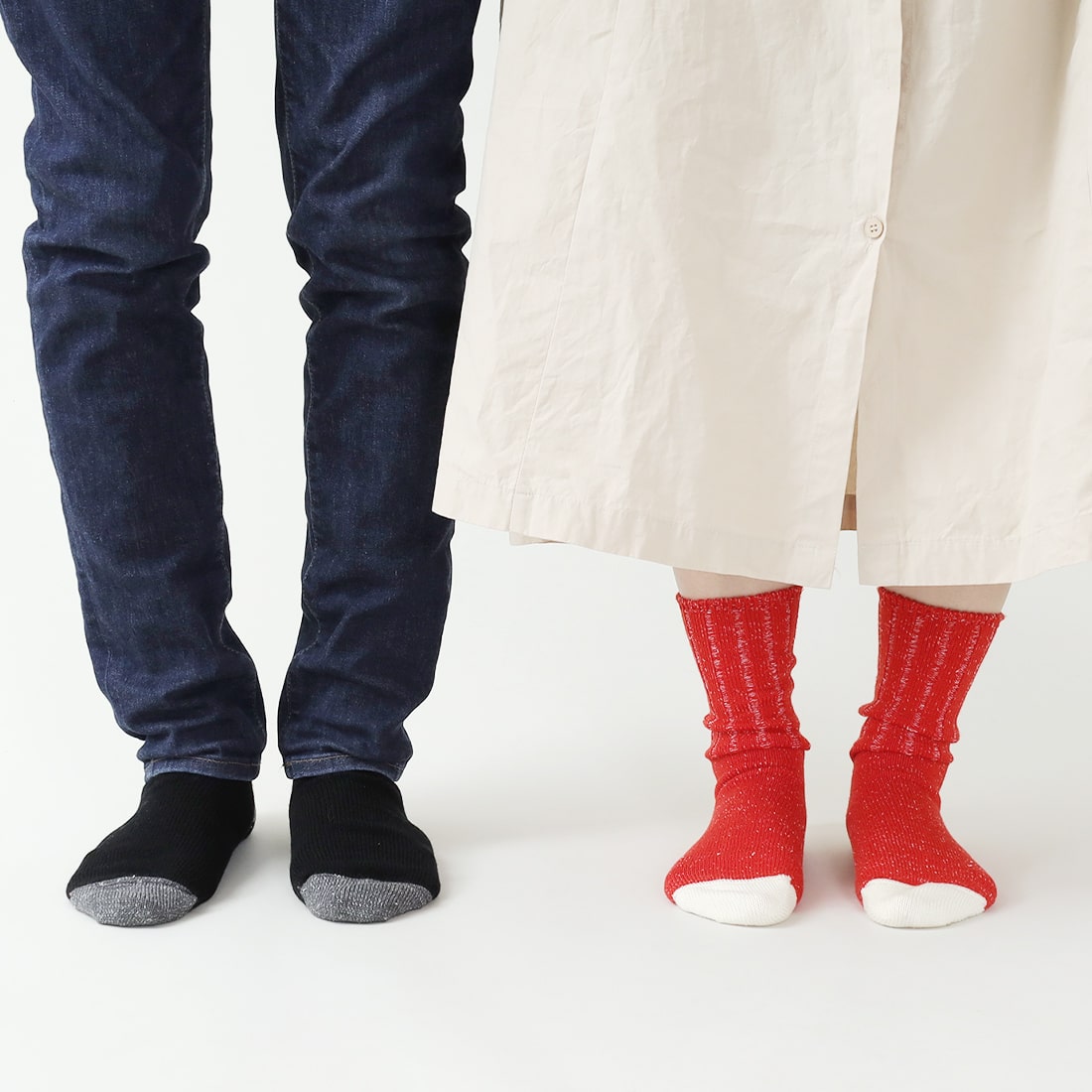 くらしきぬにはシンプルなデザインが多いですが、このバイカラー靴下は、シンプルな中にも遊び心が垣間見えるデザイン。
