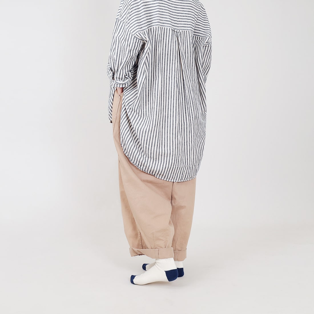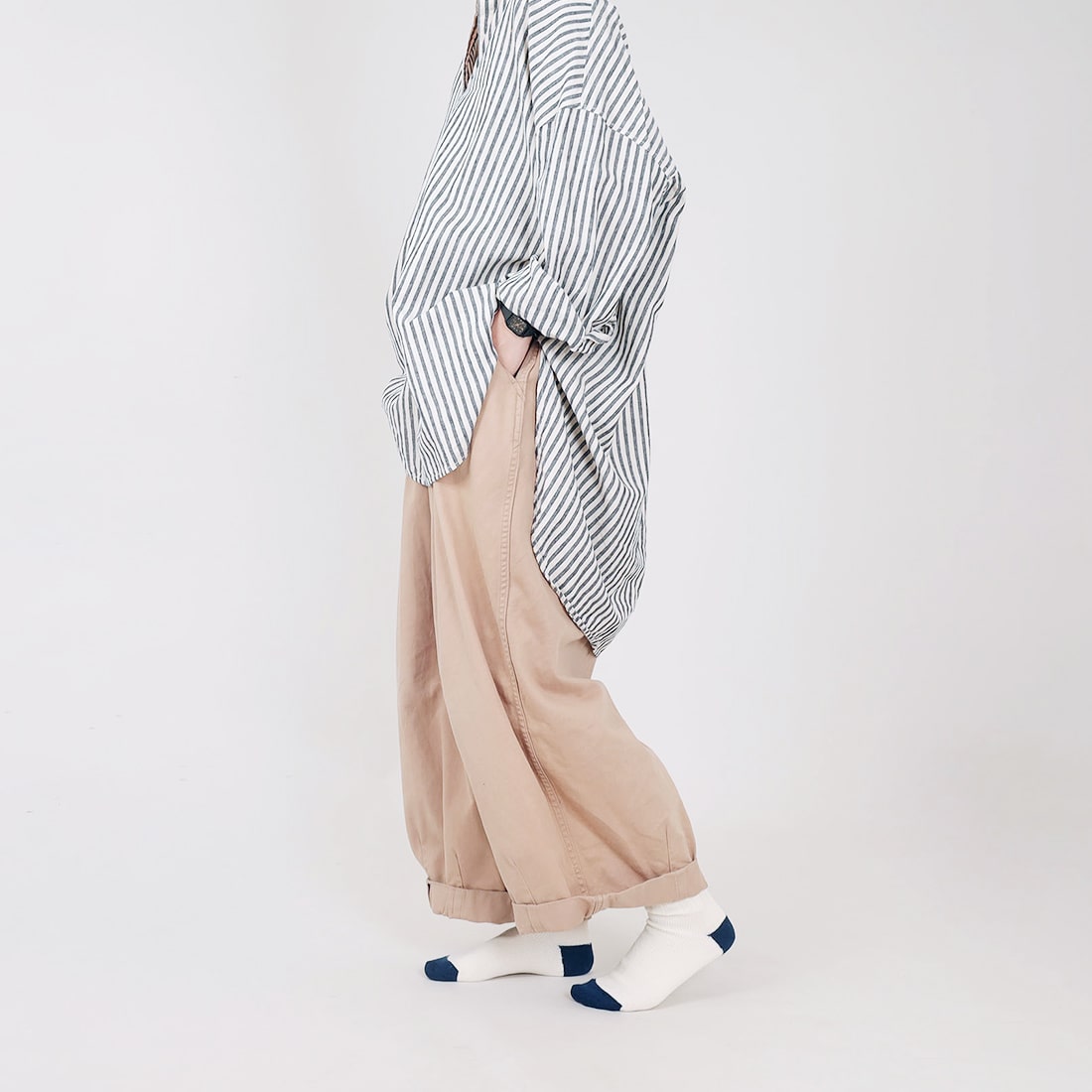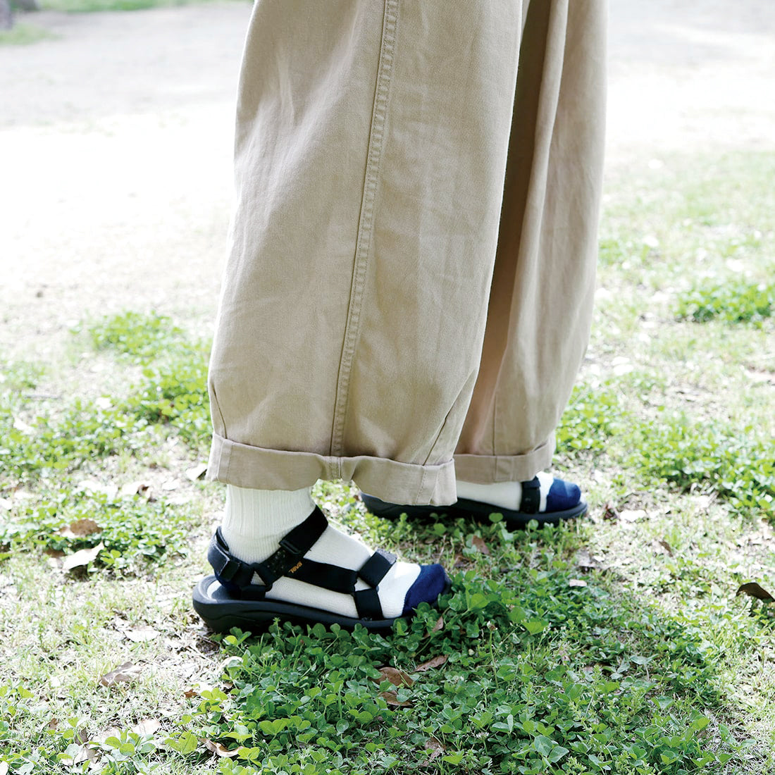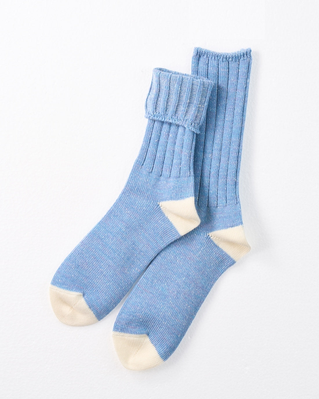 くらしきぬにはシンプルなデザインが多いですが、このバイカラー靴下は、シンプルな中にも遊び心が垣間見えるデザイン。