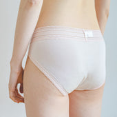股上(はきこみ丈)が深めで、たっぷりのシルク生地がお尻全体とそけい部をやさしく包み込みます。