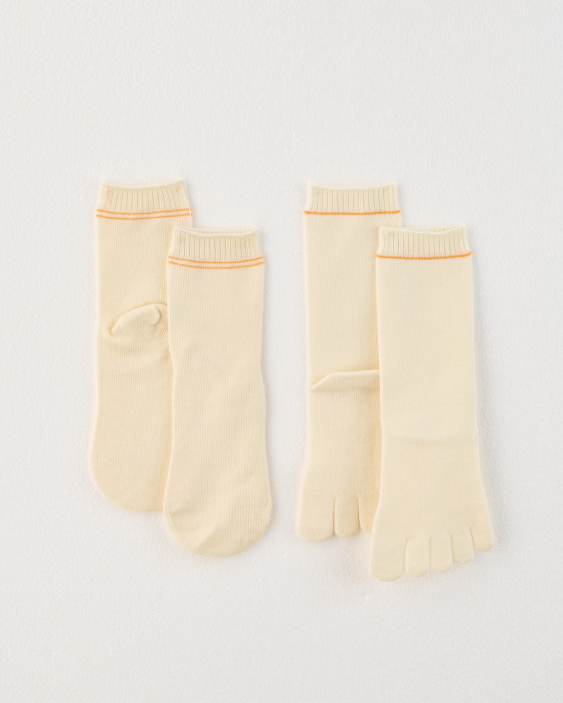 同じ素材で編んだ、5本指タイプと先丸タイプをセットに。