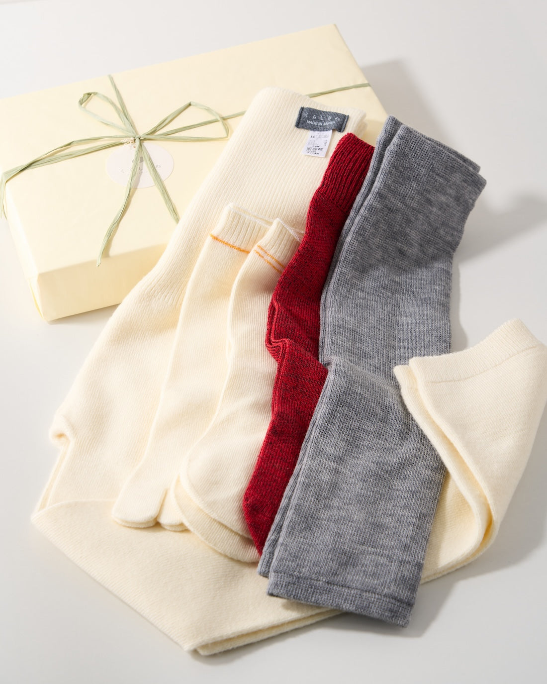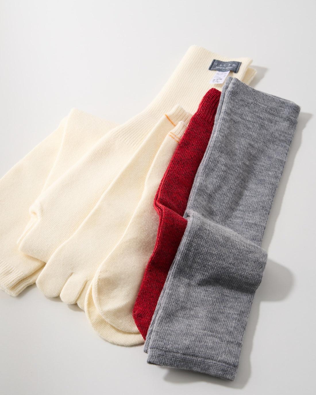 同じ素材で編んだ、5本指タイプと先丸タイプをセットに。