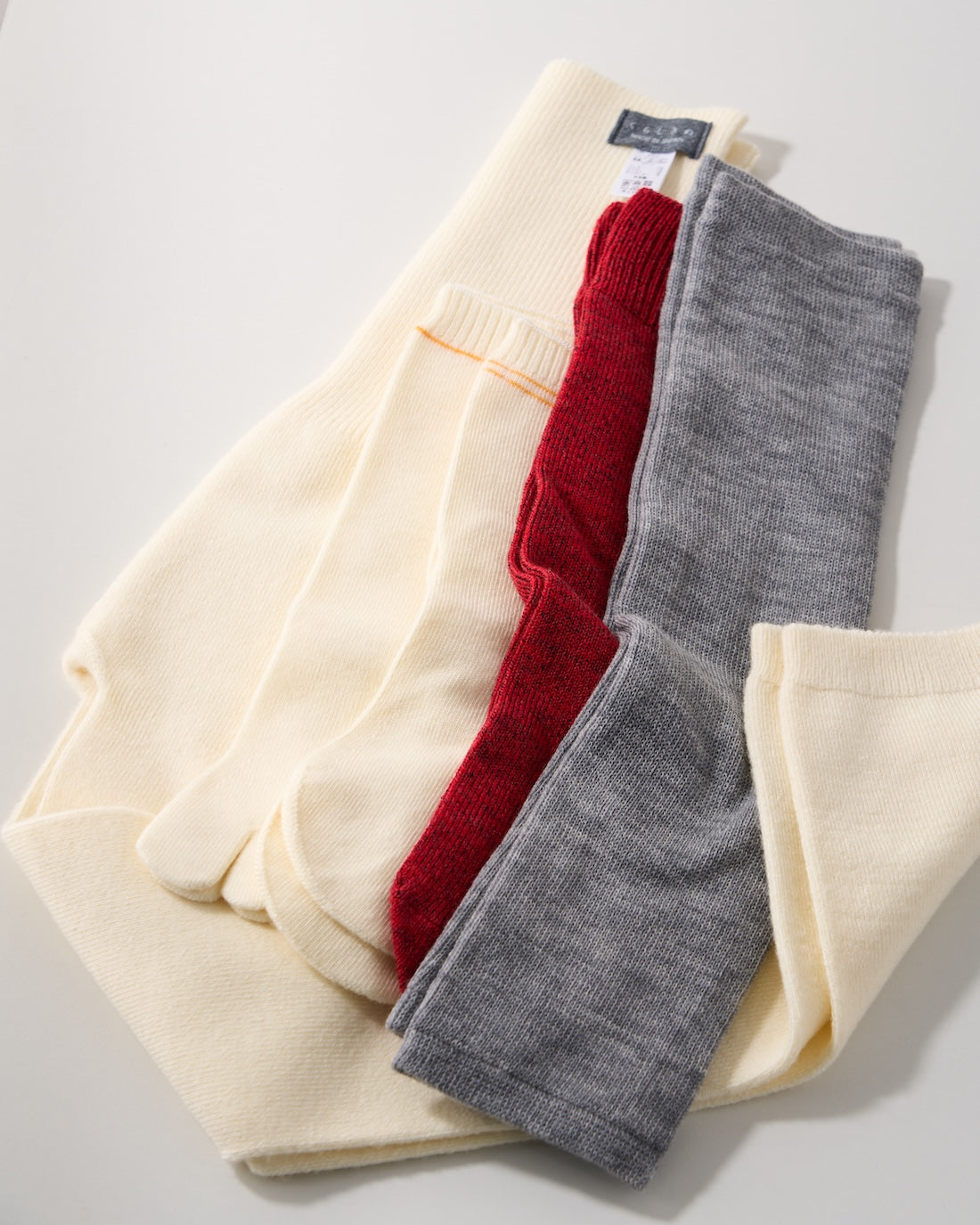 肌に当たる面がシルク、外側が保温性に優れたウールの組み合わせで、見た目よりも温かさを実感いただけるかと思います。