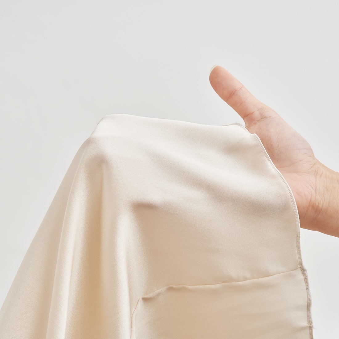 シルクの特性を活かし、表側はドレープが美しい、高級感のある見た目に。
