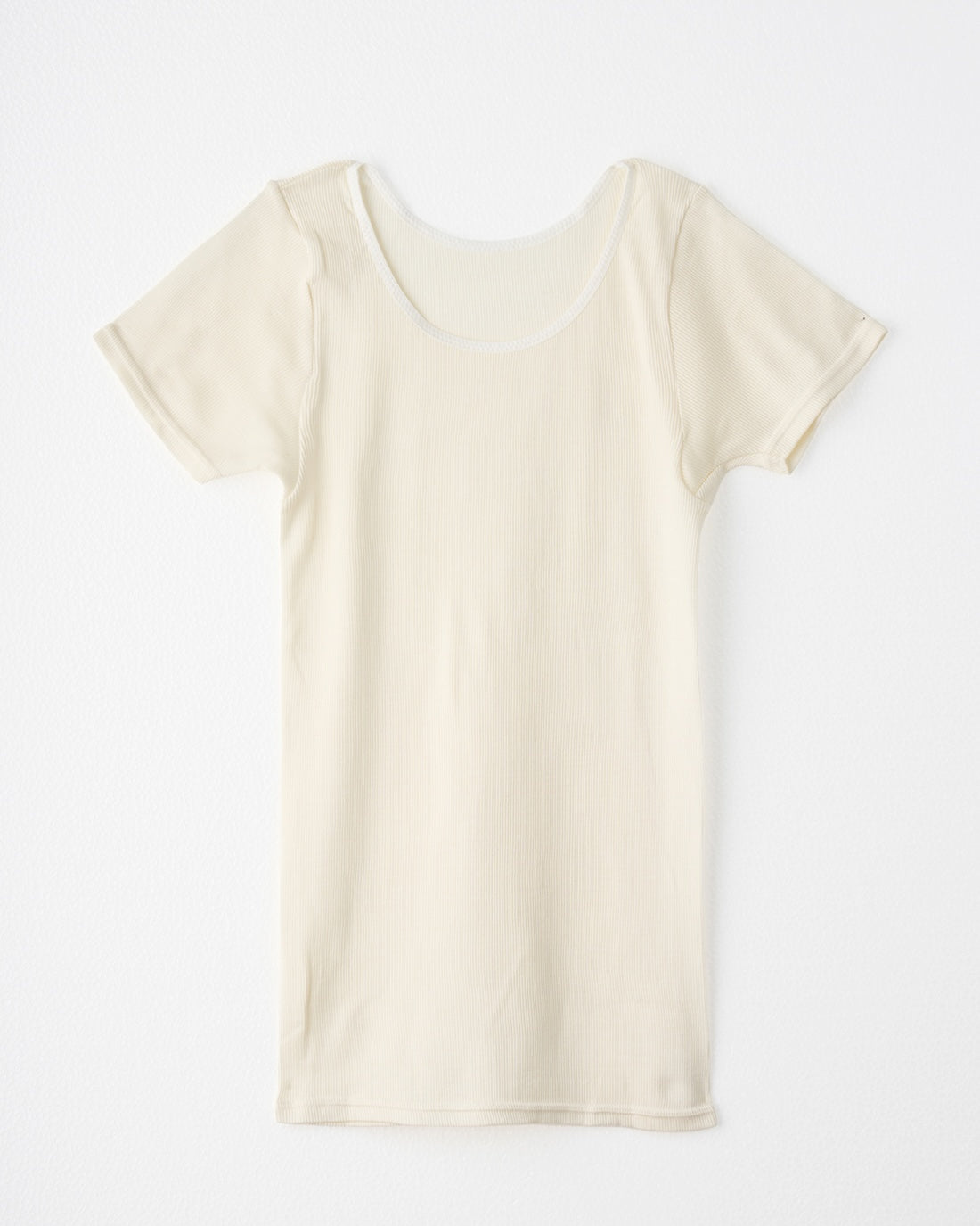 汗悩みを救う、シルク100%リブフレンチスリーブ