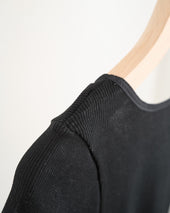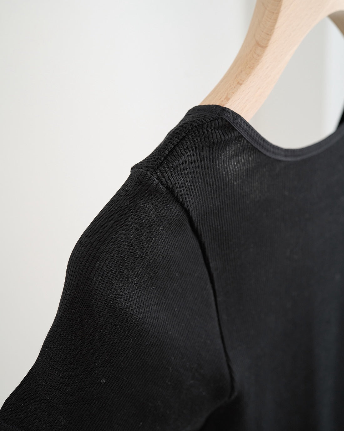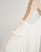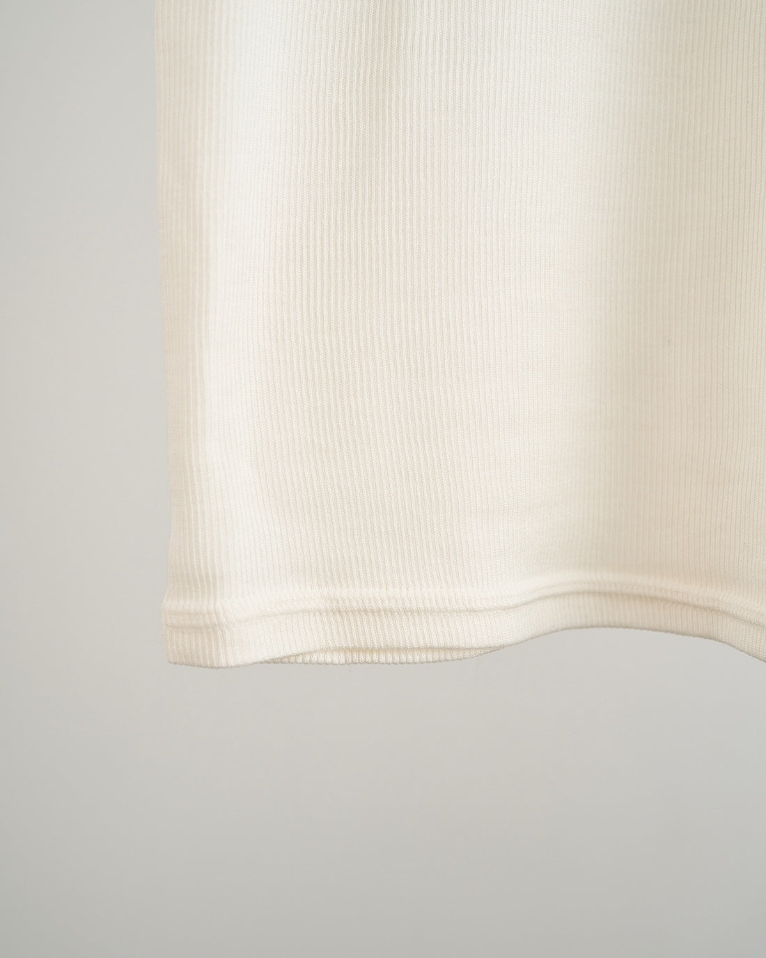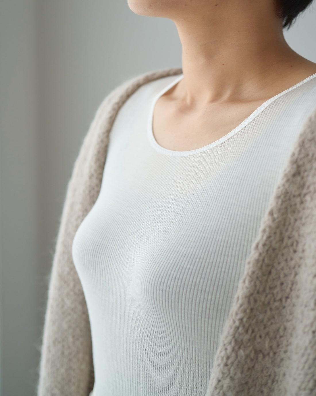繊細なリブ編み生地が、身体の動きに合わせてとろけるように伸び縮み。肌に吸い付くようにフィットしながらも、締め付け感はゼロ。