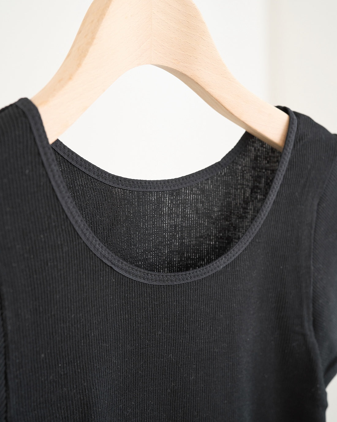 襟ぐりがざっくりと開いたインナーも多いですが、深すぎると胸元の開きが気になるし、汗をしっかり吸えません。
