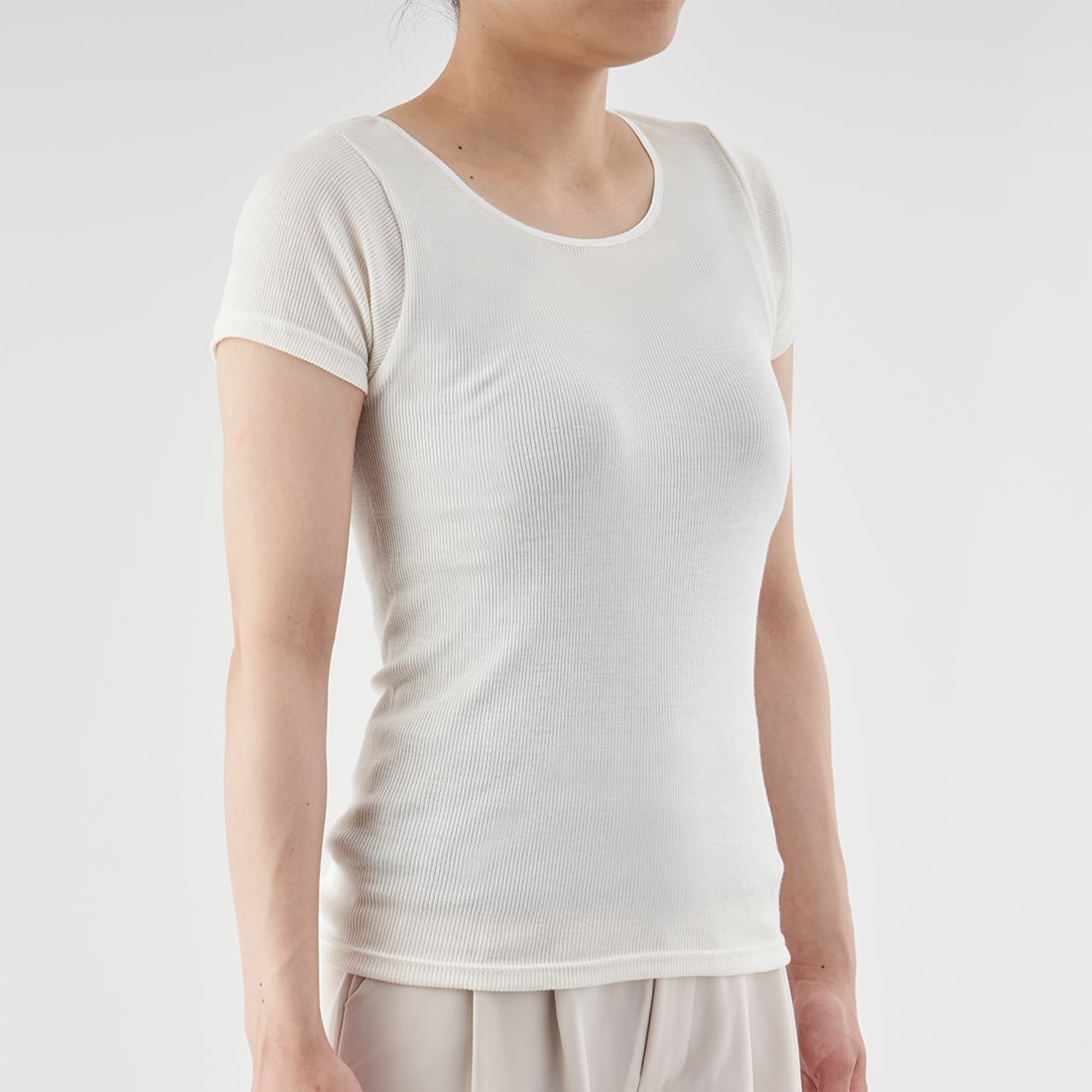 汗悩みを救う、シルク100%リブインナー上下セット(フレンチスリーブ+ショーツ)*