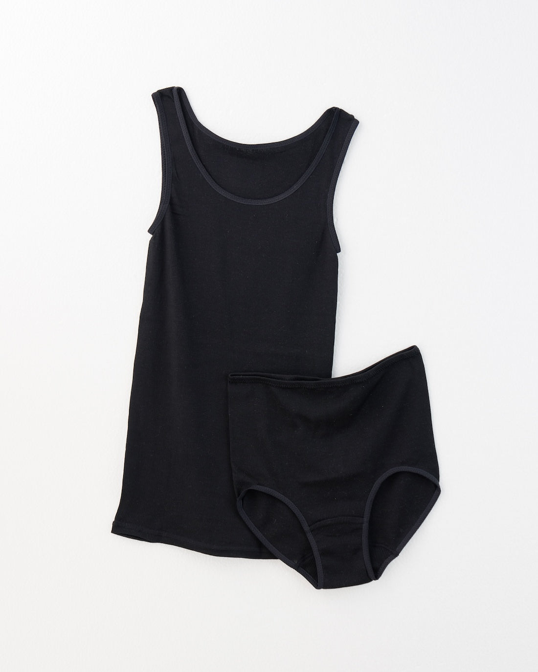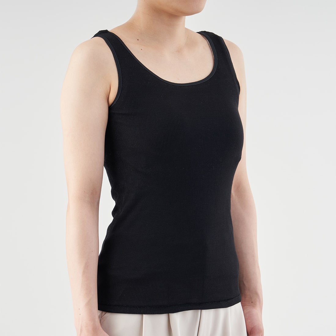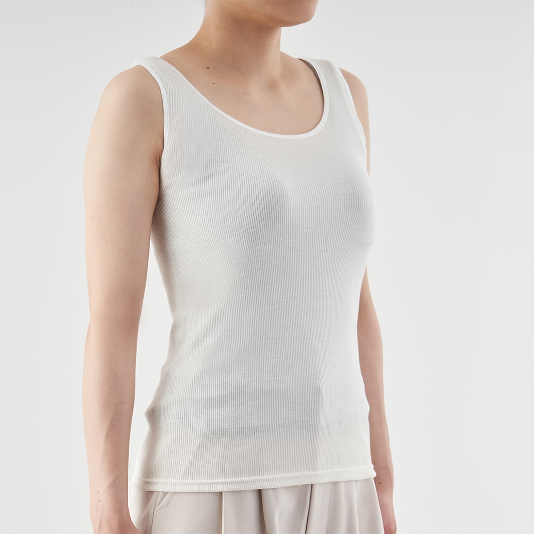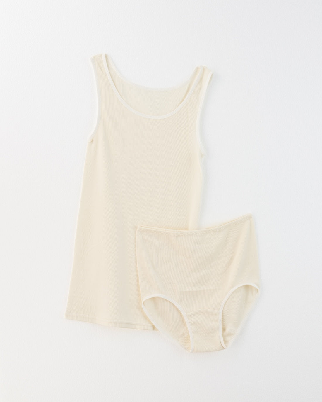 汗悩みを救う、シルク100%リブインナー上下セット(タンクトップ+ショーツ)*