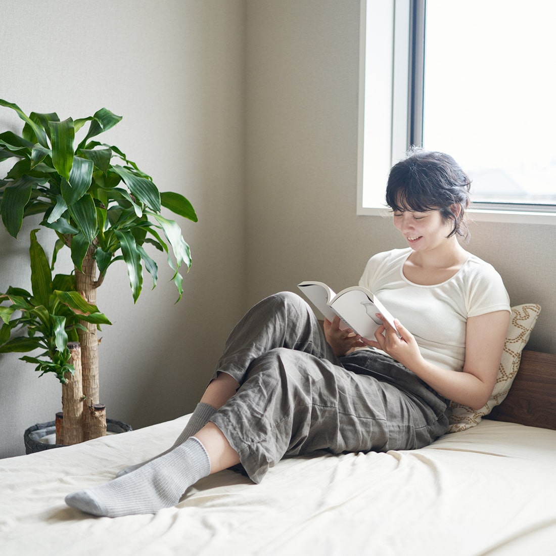 一方、乾燥する季節には、シルクの繊維に含まれる空気が断熱材の役割を果たし、体温を逃さずしっとりと温かい空気を保ちます。