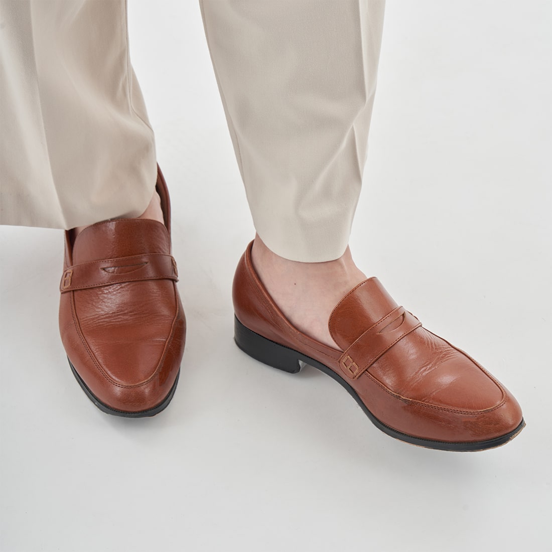ローファーやパンプスなどを履くとき、足の甲部分が大きい靴であればすっぽり隠れるデザイン。