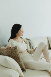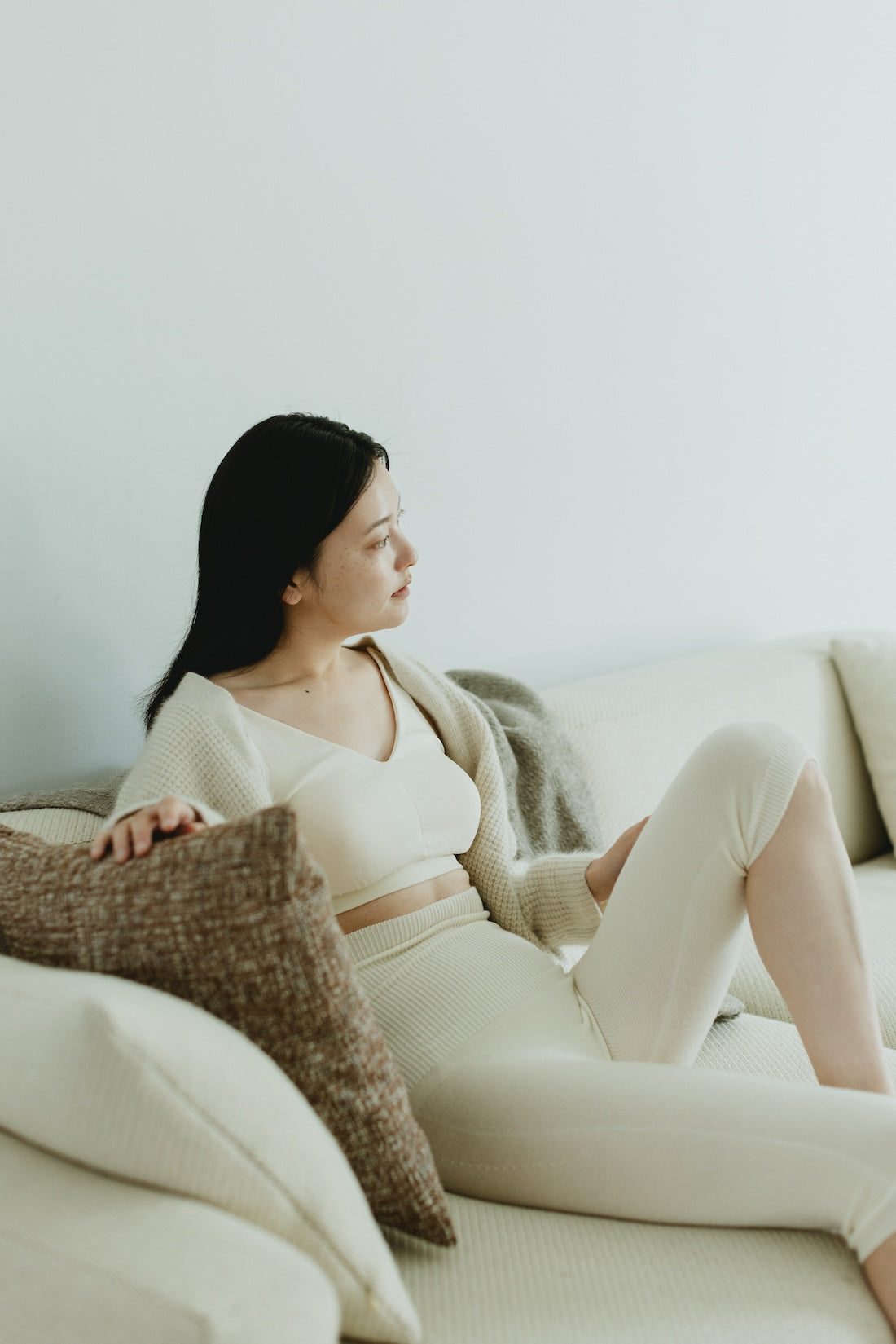 ホールガーメントと呼ばれる技術で、身体に沿うよう立体的に編み上げているため、縫い目がなく身体にきれいになじみます。