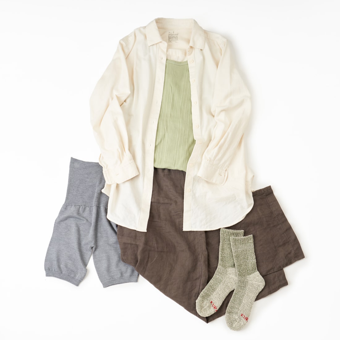 ファッション全体の雰囲気を柔らかくしてくれる、やさしい色合いです。