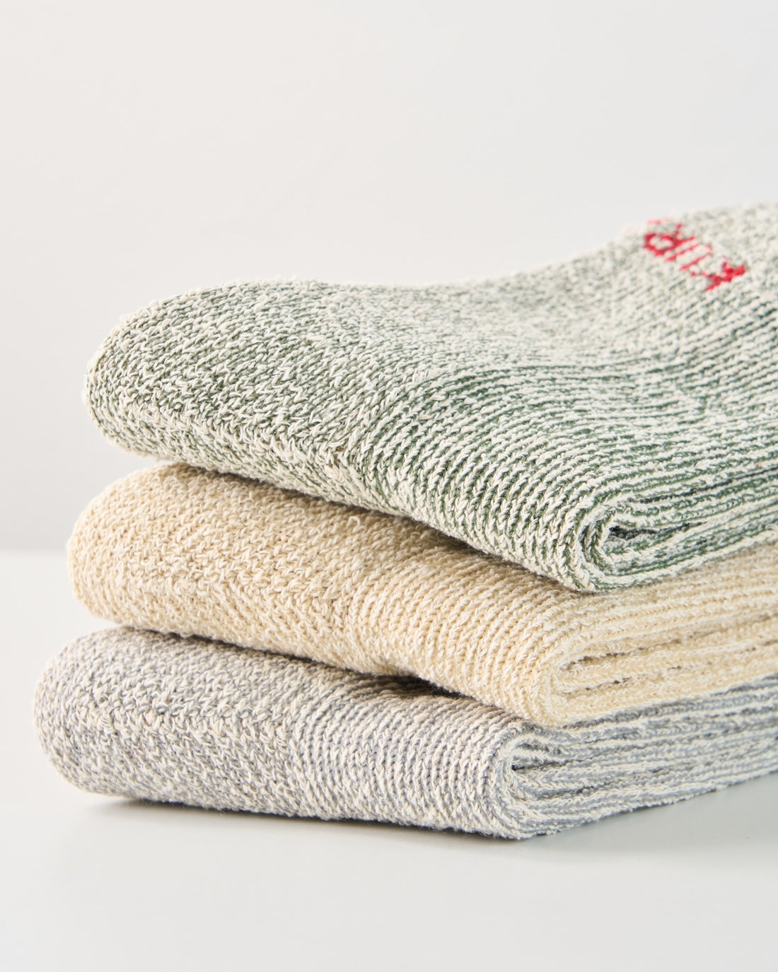 こちらの靴下では、麻の中でも「ヘンプ」という素材を使用しました。