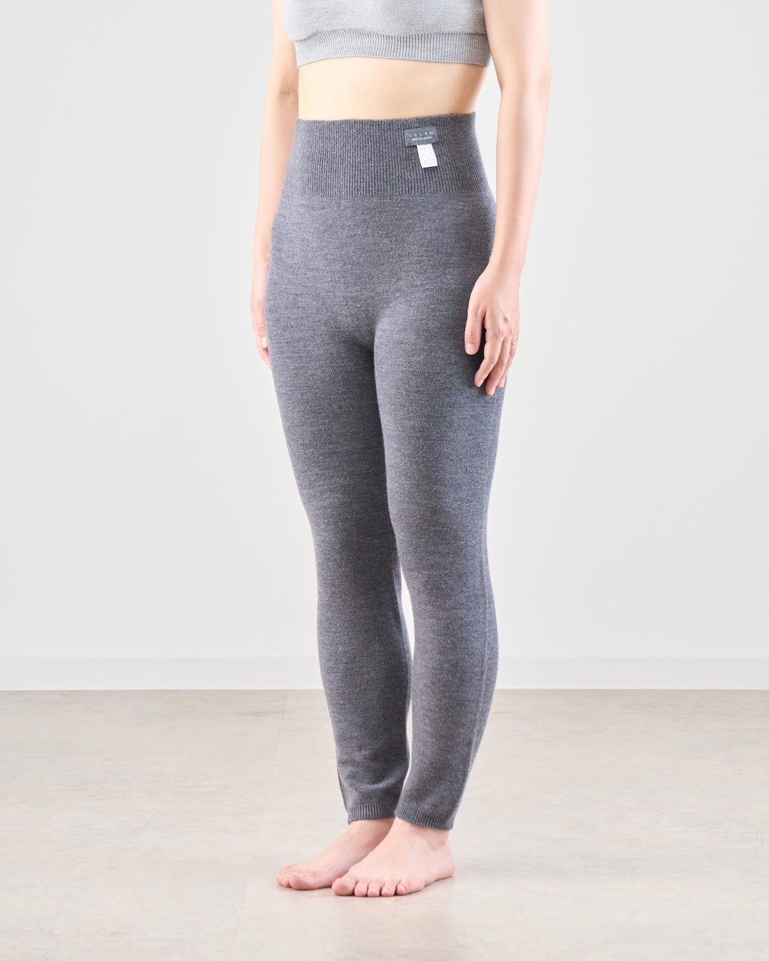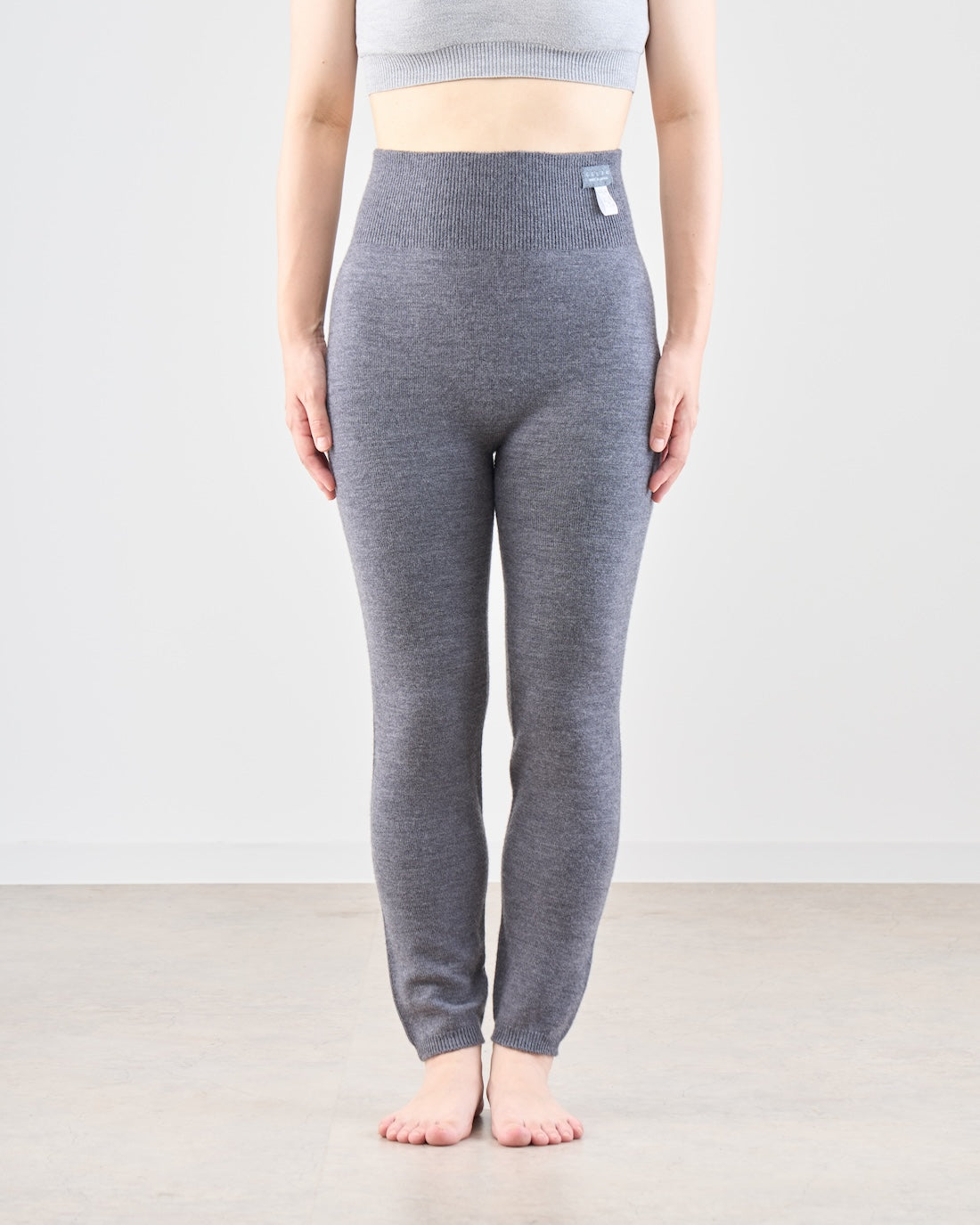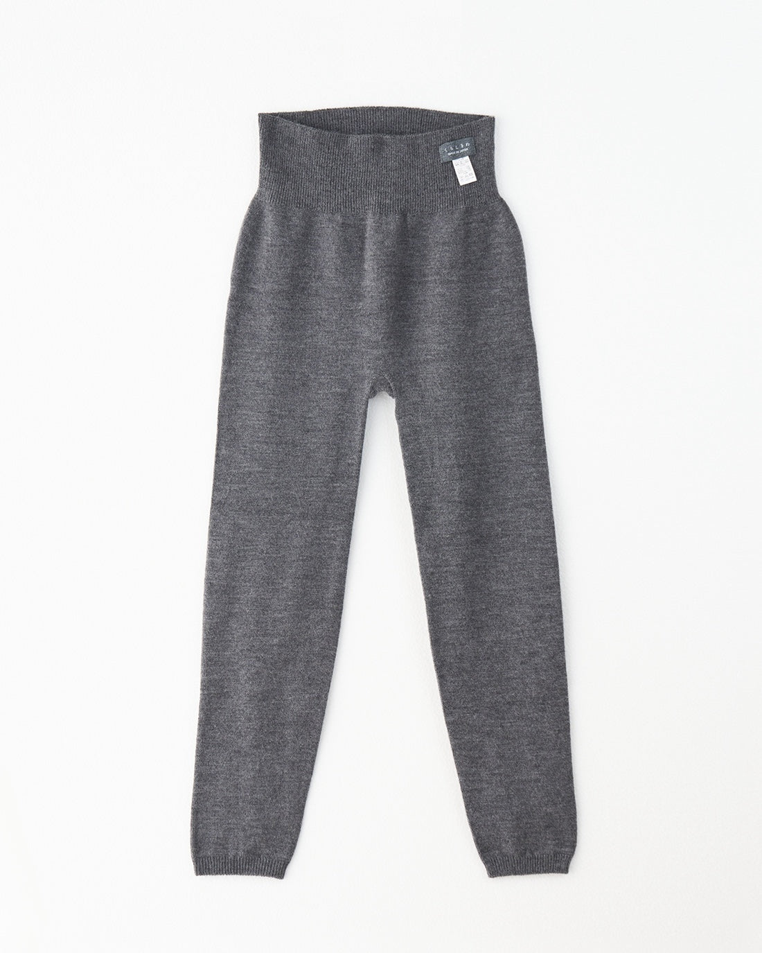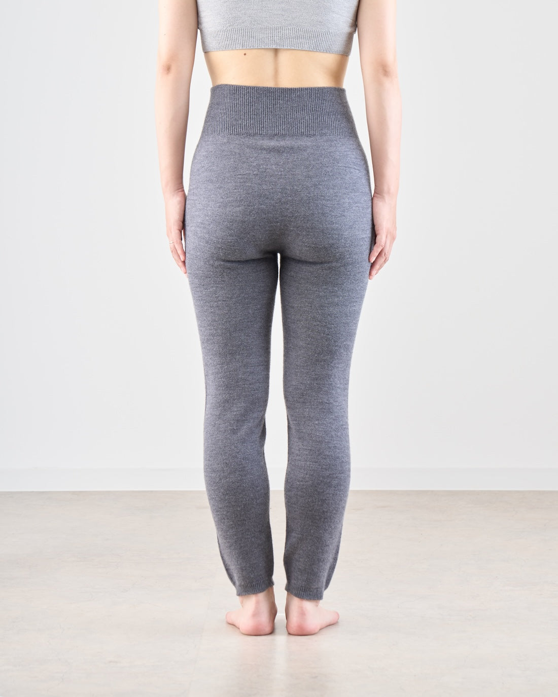 素材と素材を縫い合わせないホールガーメントで編み立てているため、編み終わり(内側の股部分)を2箇所、糸を少し残した状態で糸始末をしています。