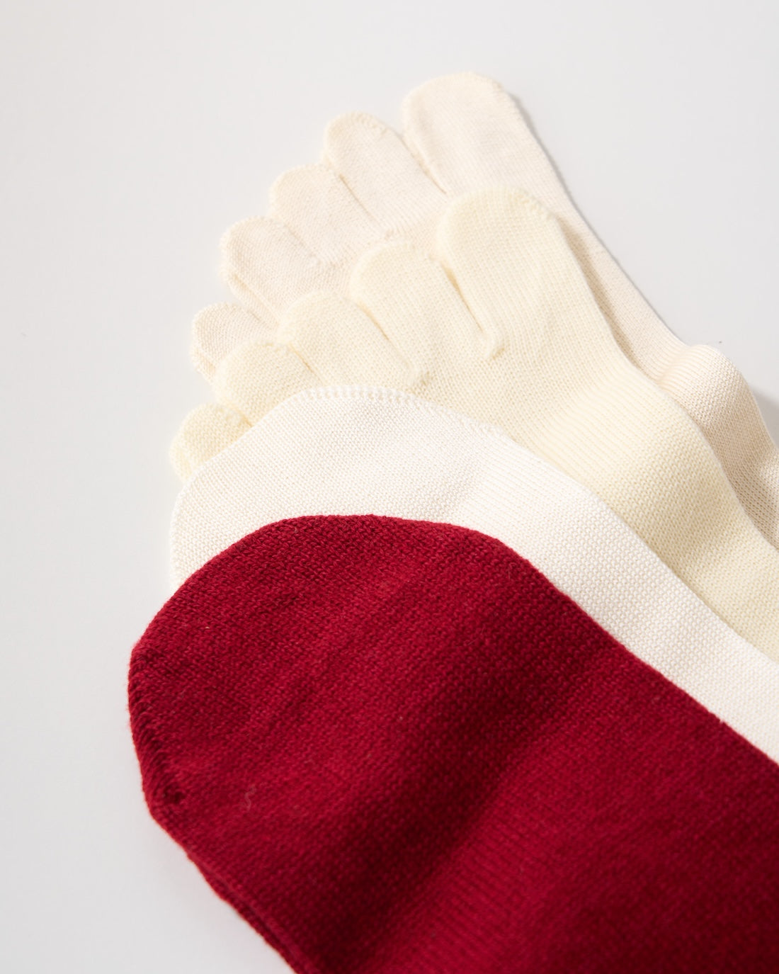 重ね履きの1枚目に履いていただくのは、シルク5本指靴下。