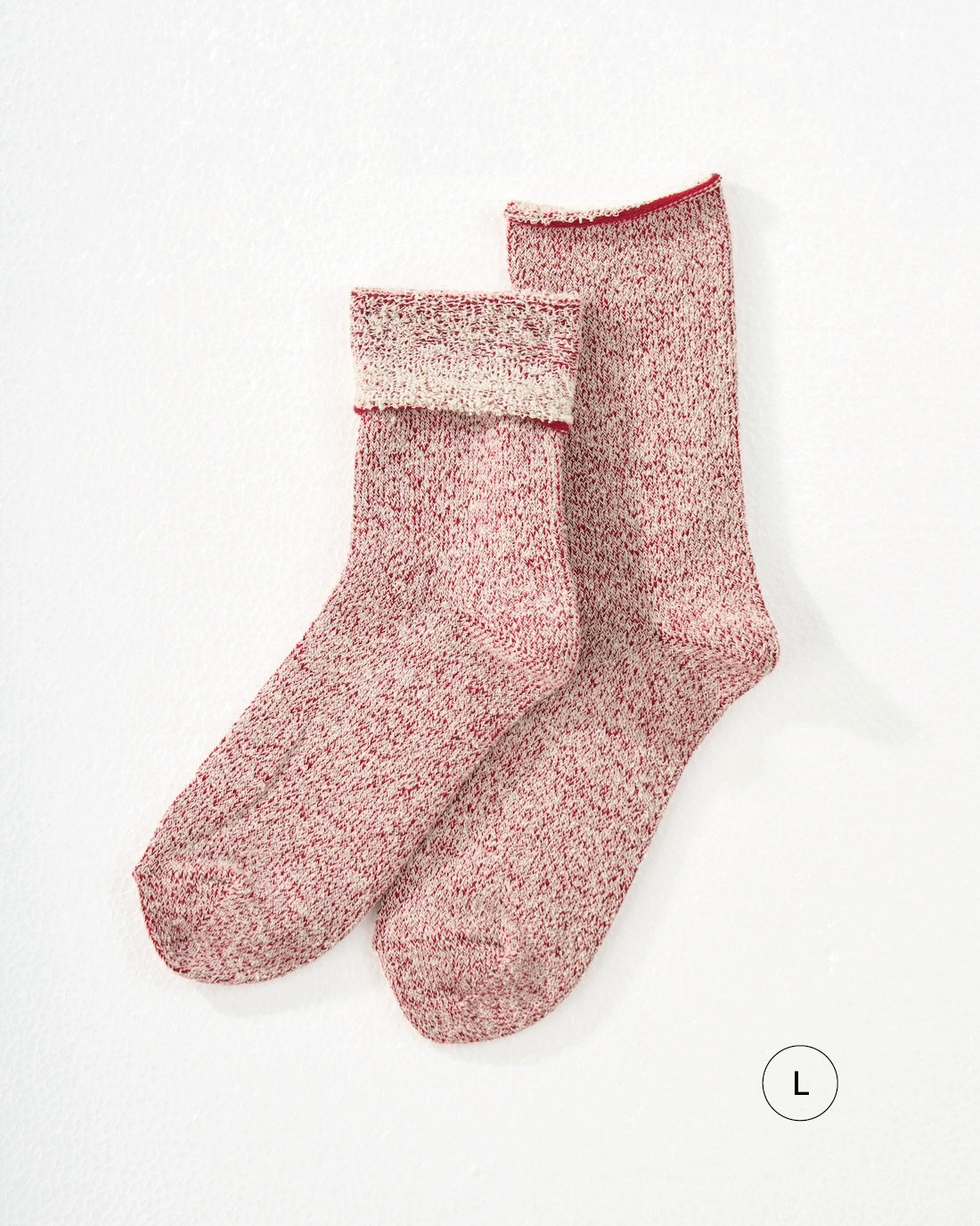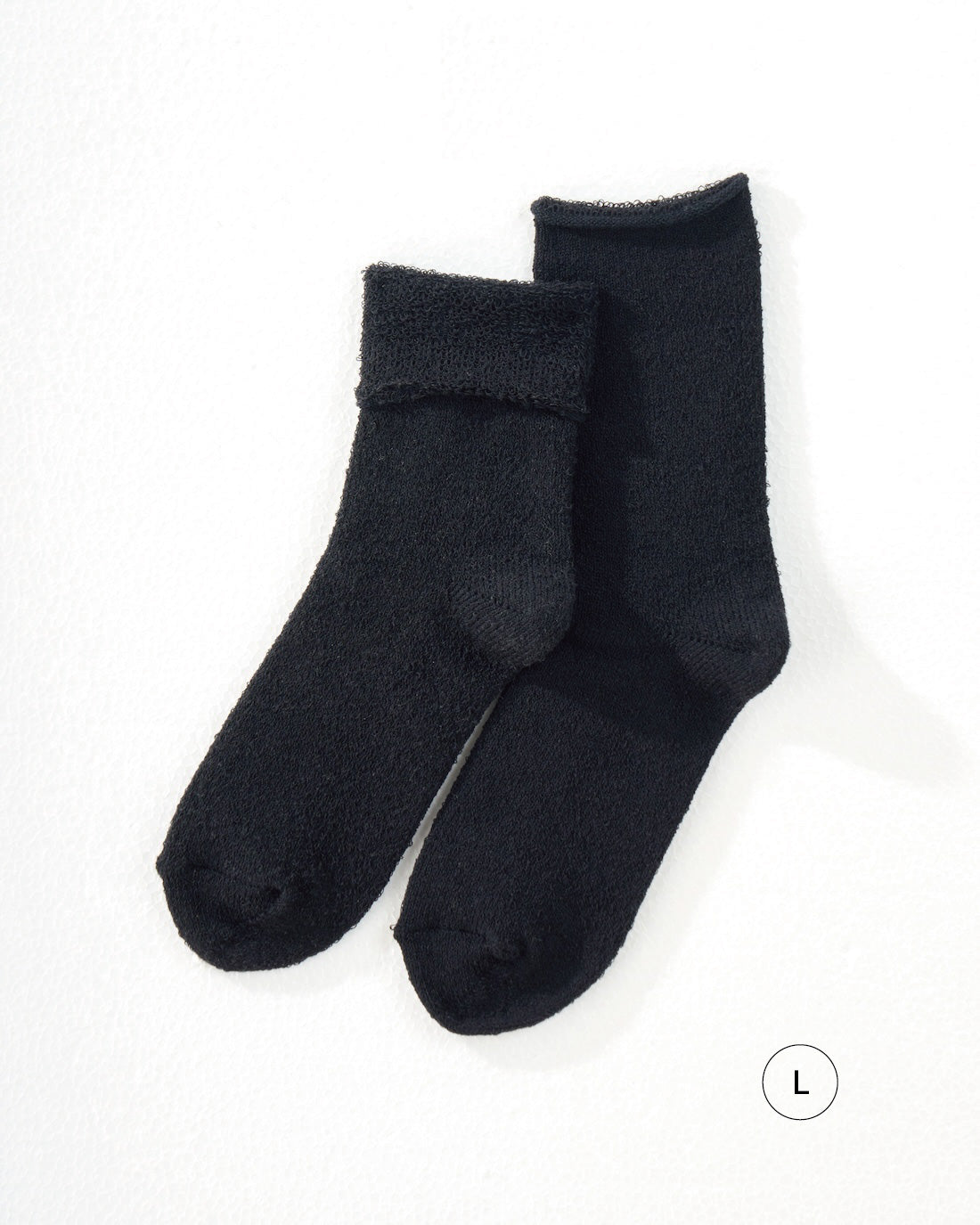 このパイル先丸靴下の内側には、極細のシルク糸をたっぷりと使いました。