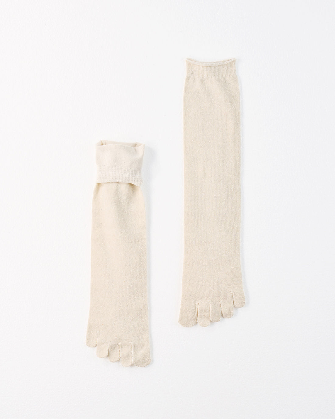 薄手で伸びが良く、軽やかな履き心地の、お手軽冷えとり靴下かかとなし。