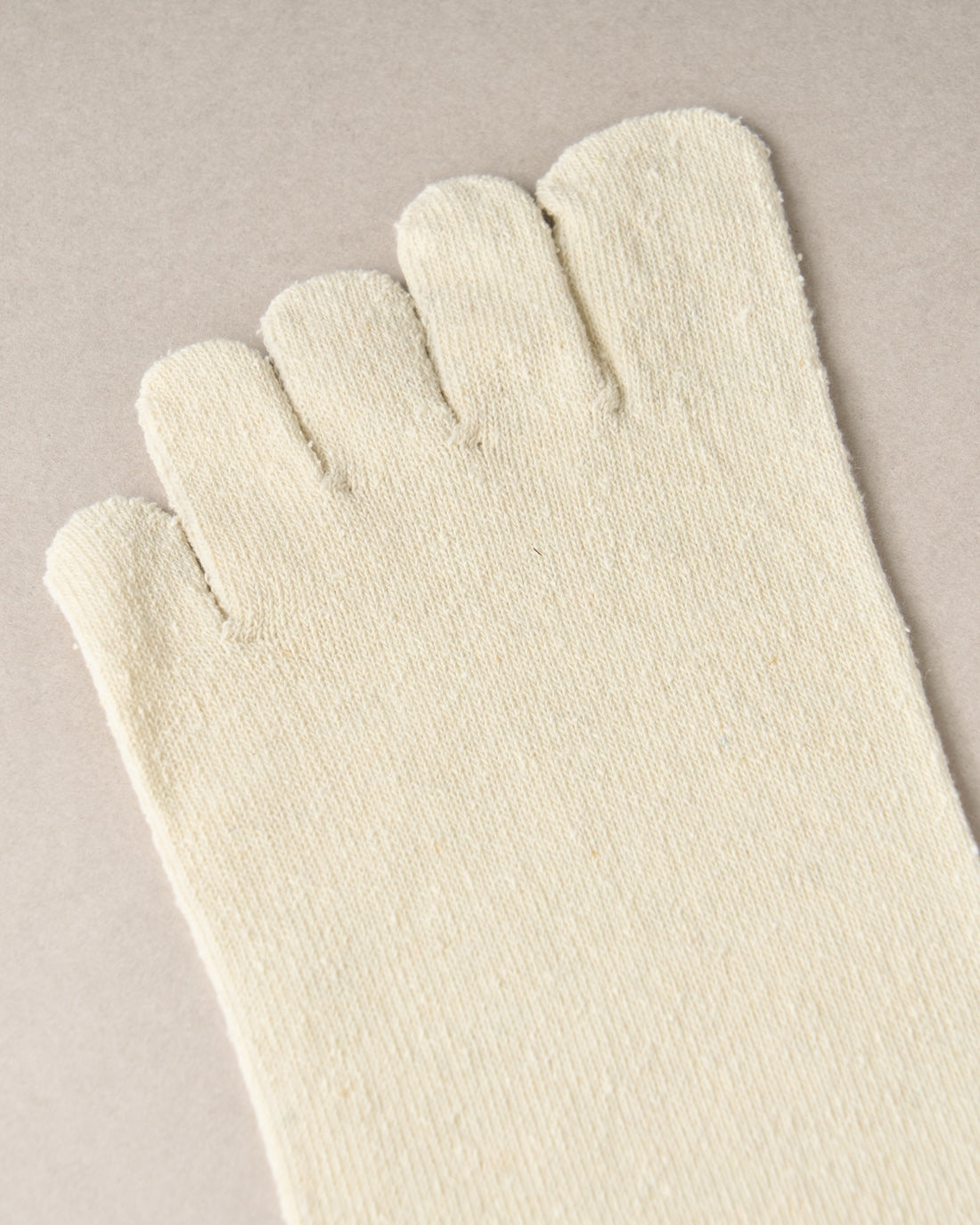 ・シルク5本指靴下は、自然の風合いを守るため着色を行っておりません。加工の工程が少ないため、