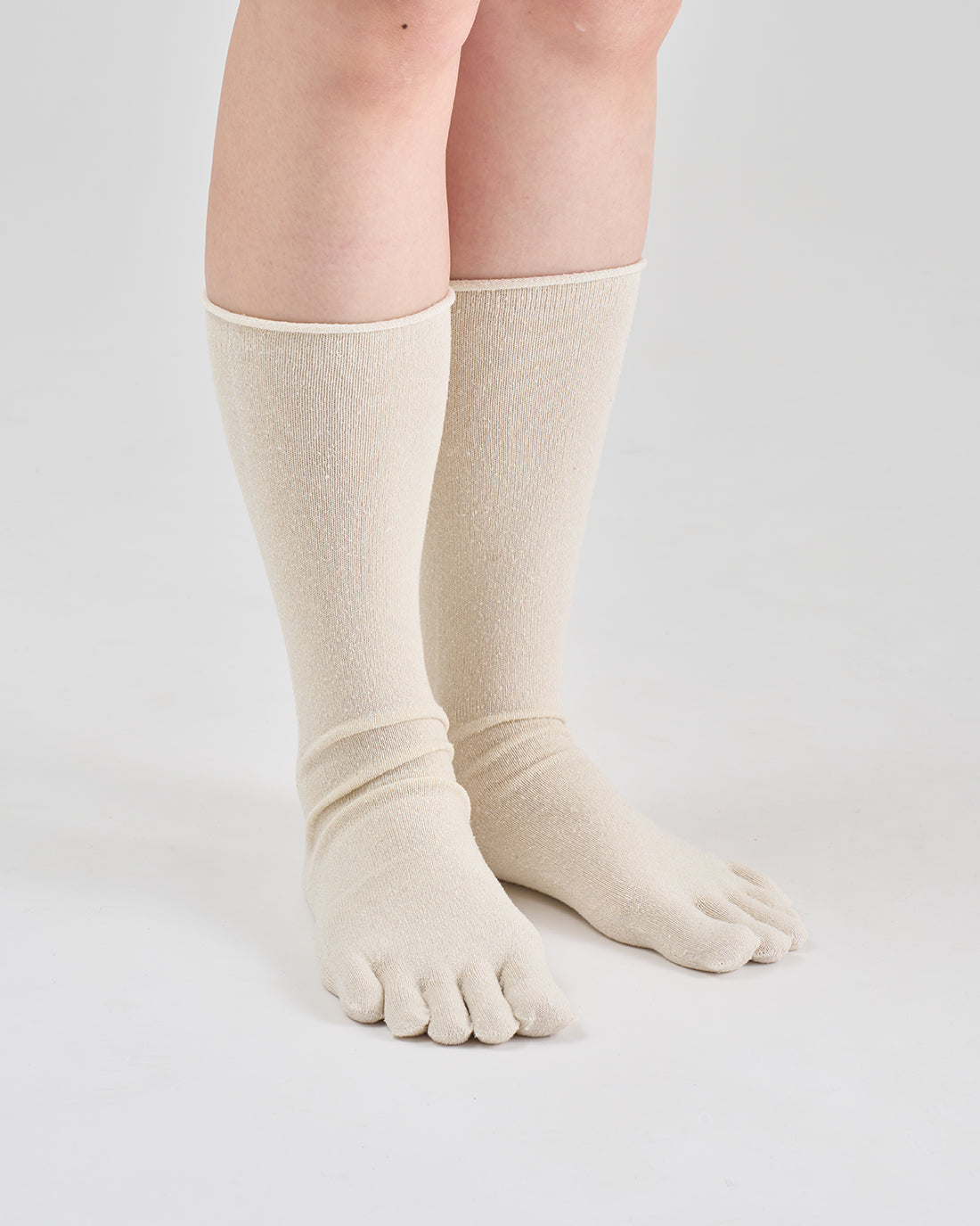 同じ紬糸のシルク糸でお作りした素朴シルク先丸靴下もございます。