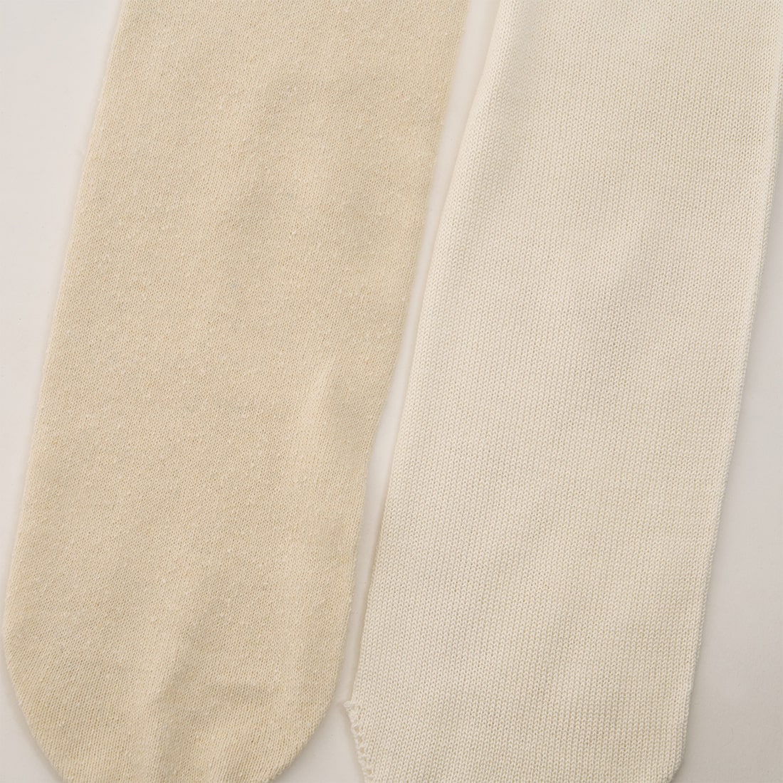 シルク先丸靴下のような、きめ細かくなめらかな質感とは少し異なりますが、紬糸ならではの優しい肌ざわりと自然な味わいを楽しんでいただけます。