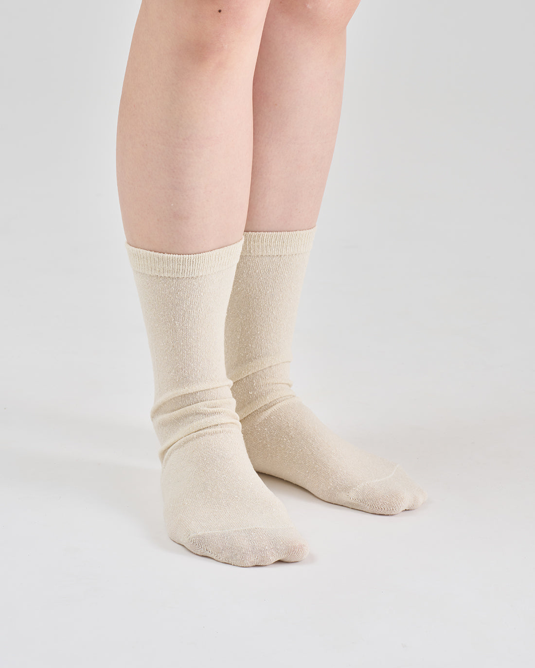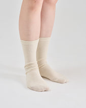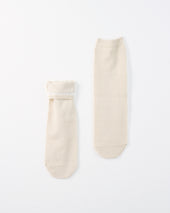 シルク100%靴下のような、きめ細かくなめらかな質感とはまた一味違う、素朴な風合いとやわらかさが魅力。