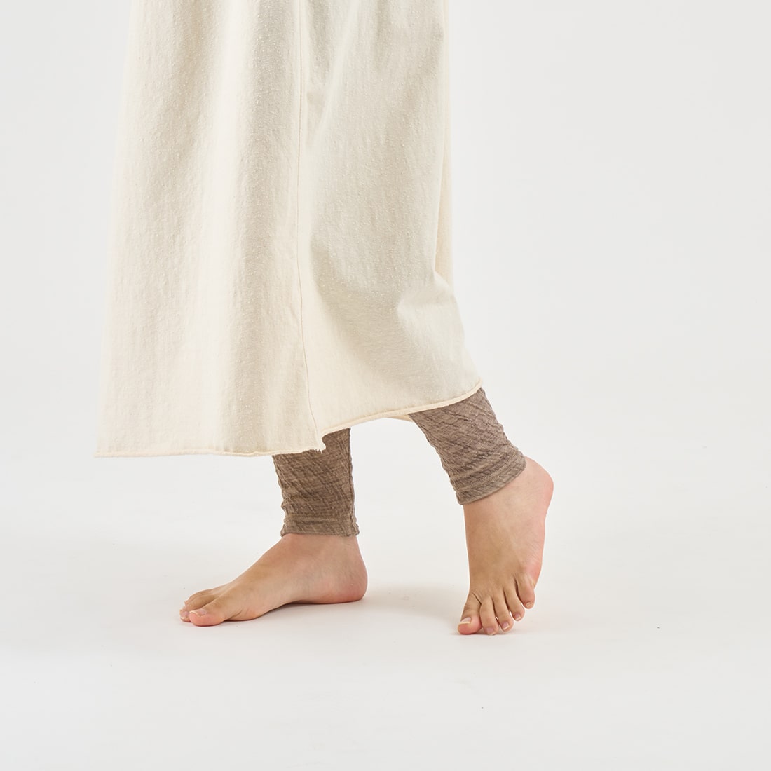 レギンスはスカートやパンツの裾からちらりと覗かせて、冷えとりをしながらおしゃれを楽しんでいただけます。