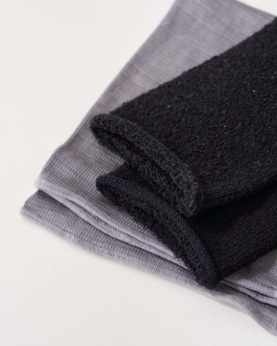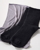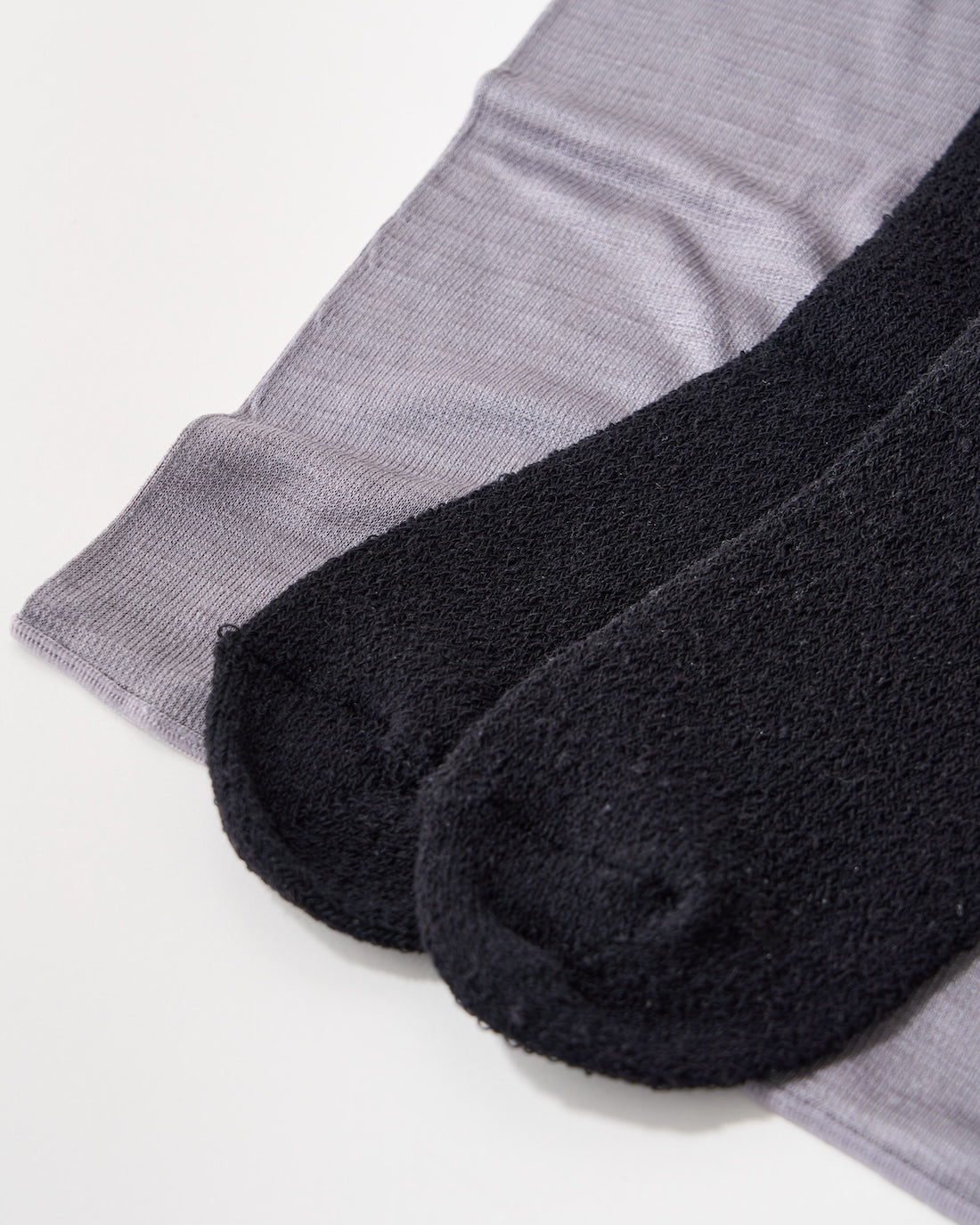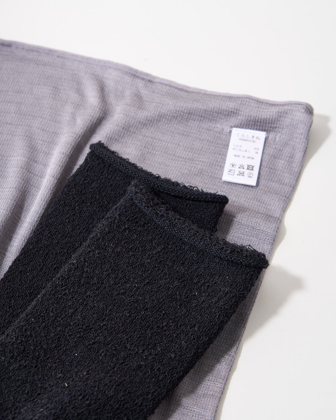 | 素材 | 【シルクはらまき】 シルク 97%、ポリウレタン 3% 【シルク&ウール パイル先丸靴下】 シルク 47%、ウール 42%、ナイロン 9%、ポリエステル 1%、ポリウレタン 1% |