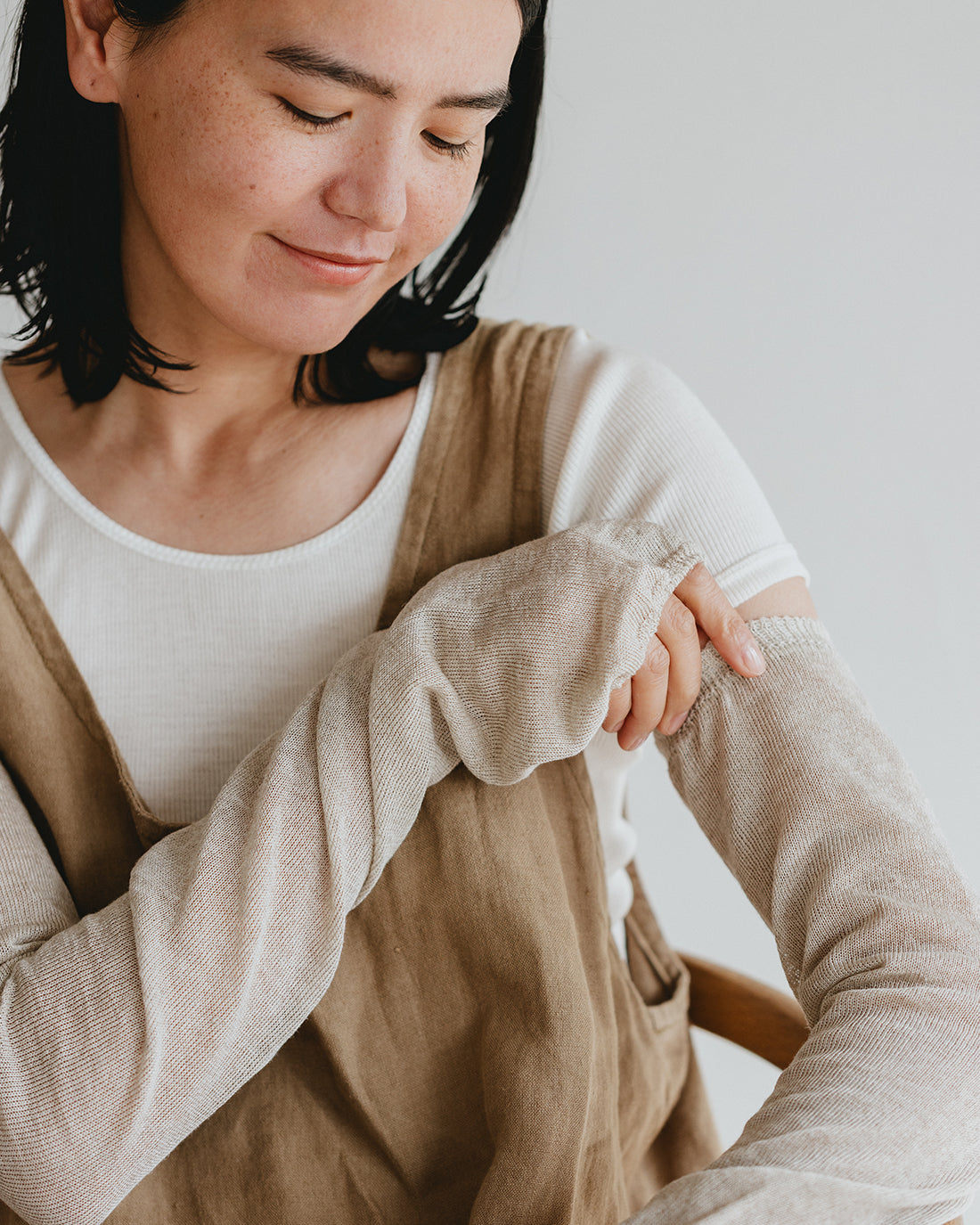 リネン&シルク 指あきアームカバー