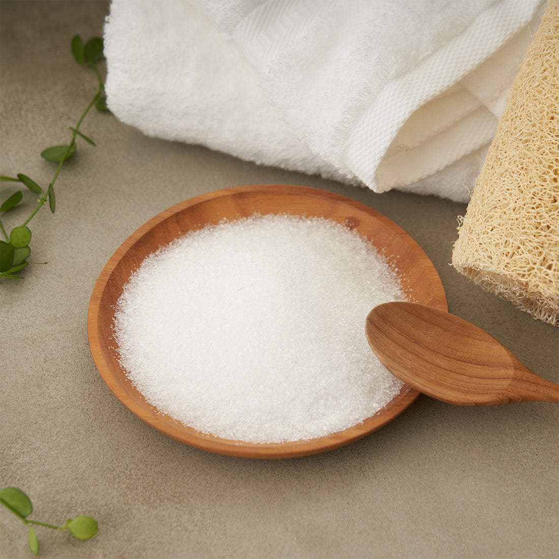 中世にイギリスのエプソムという場所で発見され、見た目が白く塩に似ていたためにその名が付いたと言われています。「エプソムソルト」という名前ですが、塩は入っていないため浴槽を傷めません。