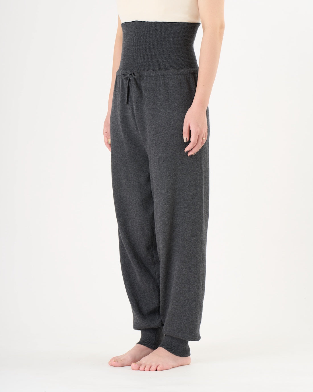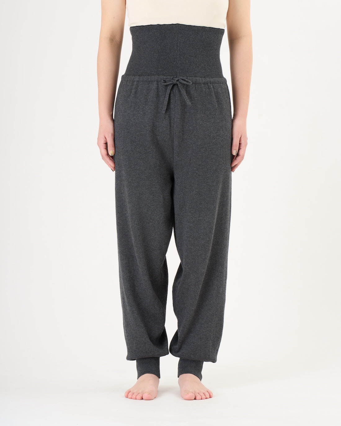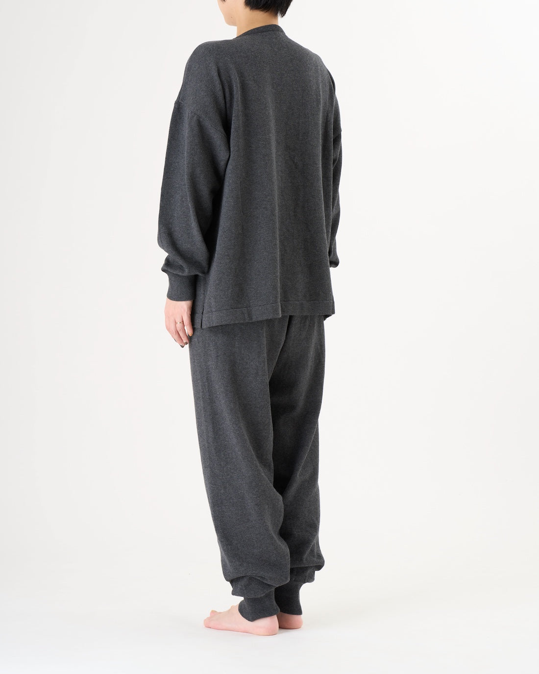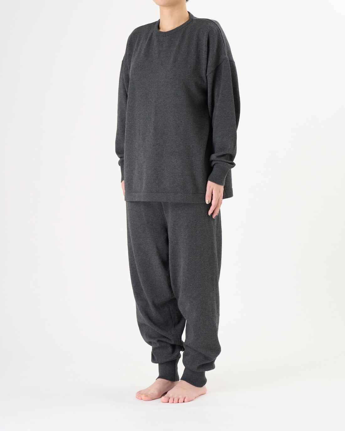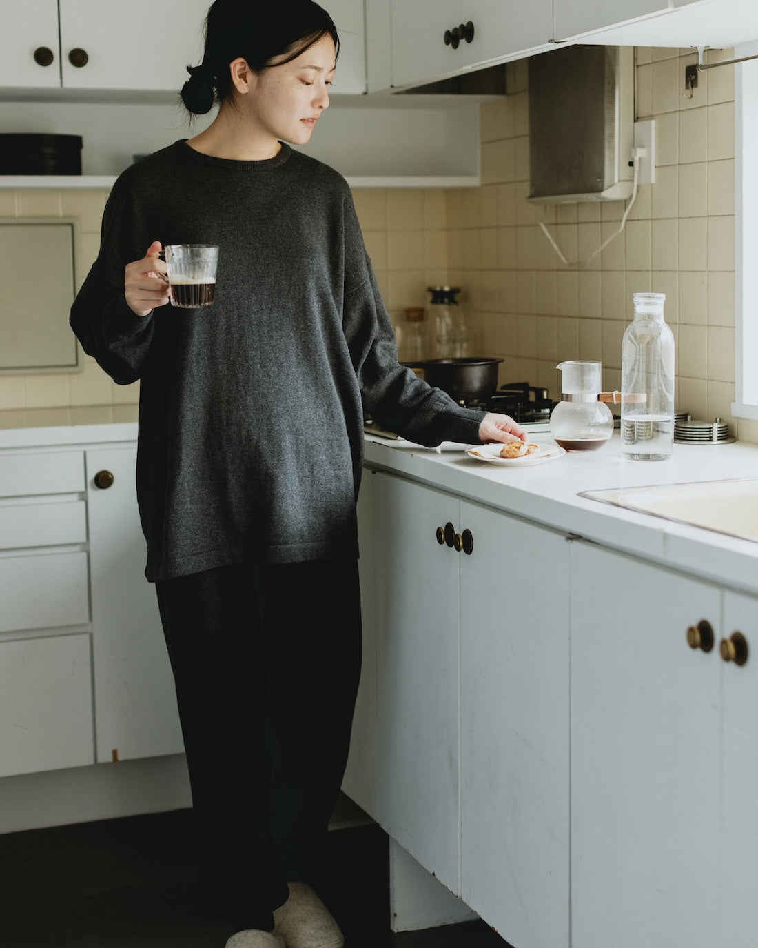 そんなリラックスタイムに寄り添うウェアにするために、生地には肌にすっとなじんで安らぎをもたらしてくれる「綿(コットン)」をたっぷり使いました。さらに、なめらかで肌触りのよい「カシミヤ」もブレンド。