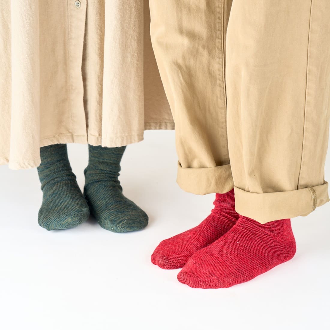 1枚でも重ね履きでも、スッと履けるお手軽冷えとり靴下。