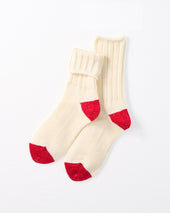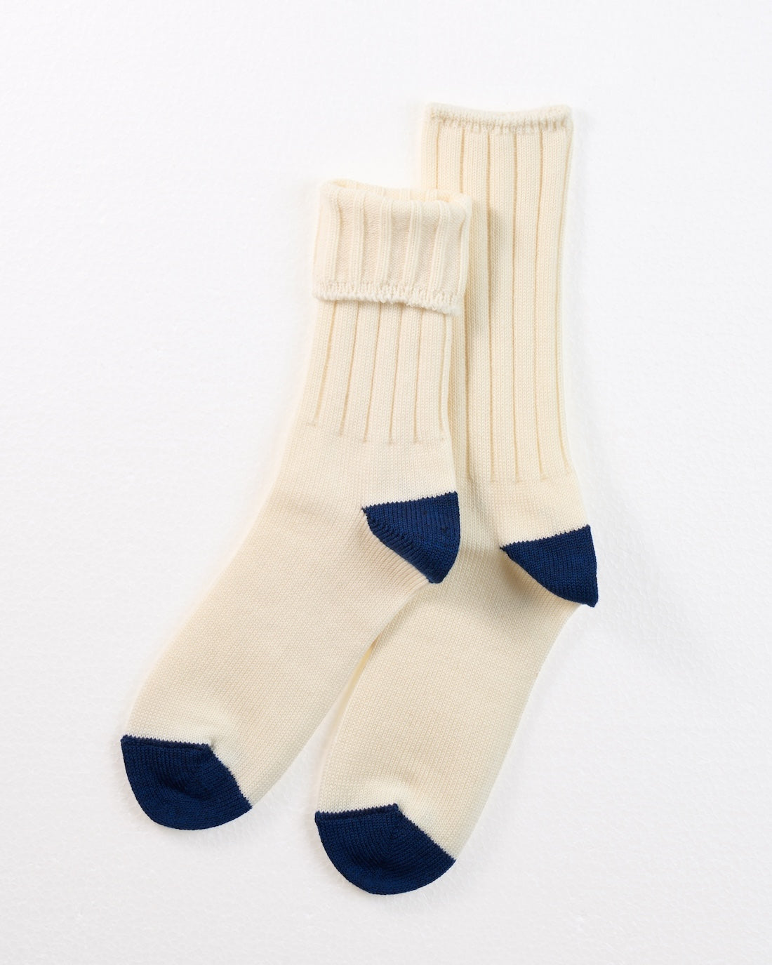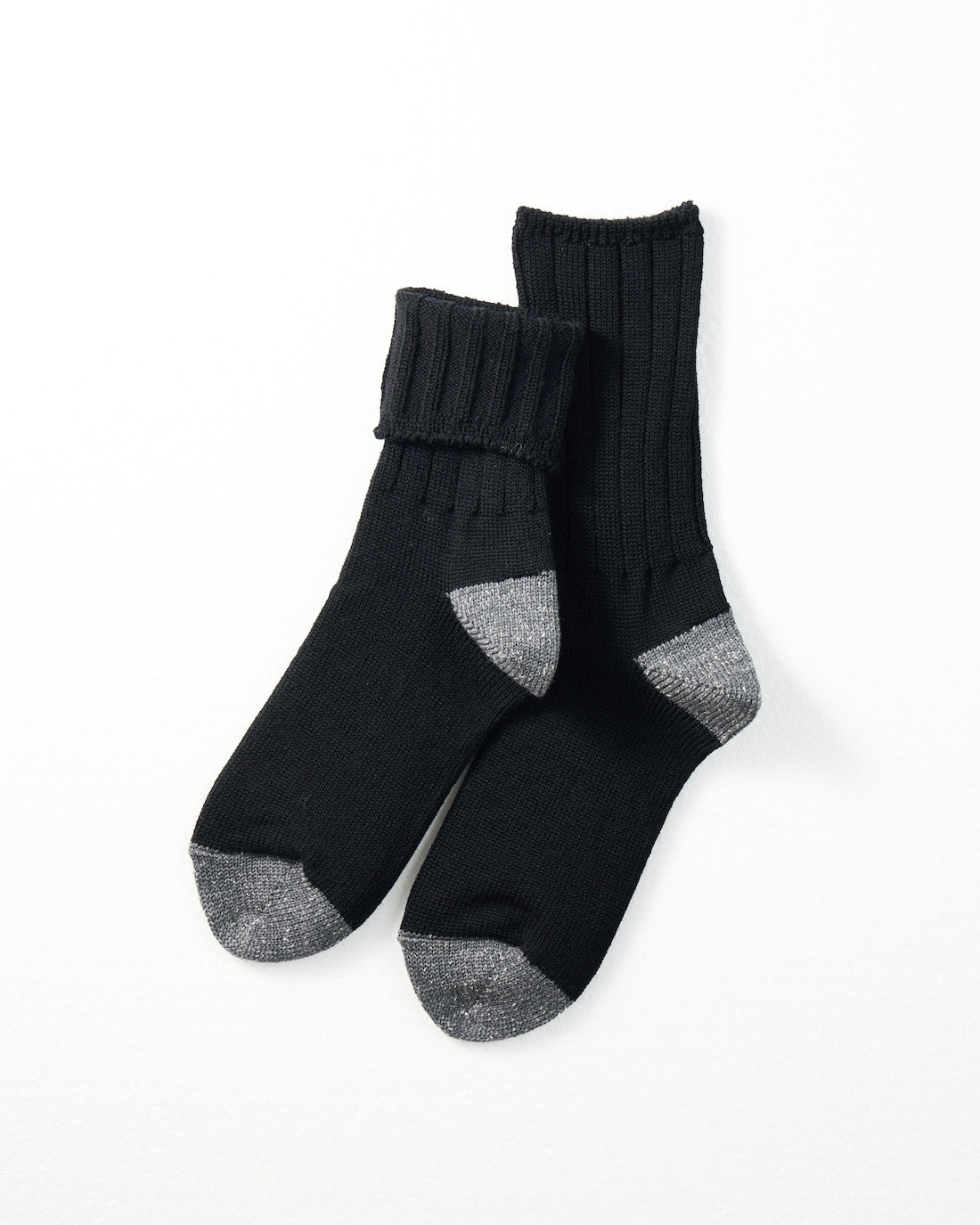 くらしきぬにはシンプルなデザインが多いですが、このバイカラー靴下は、シンプルな中にも遊び心が垣間見えるデザイン。
