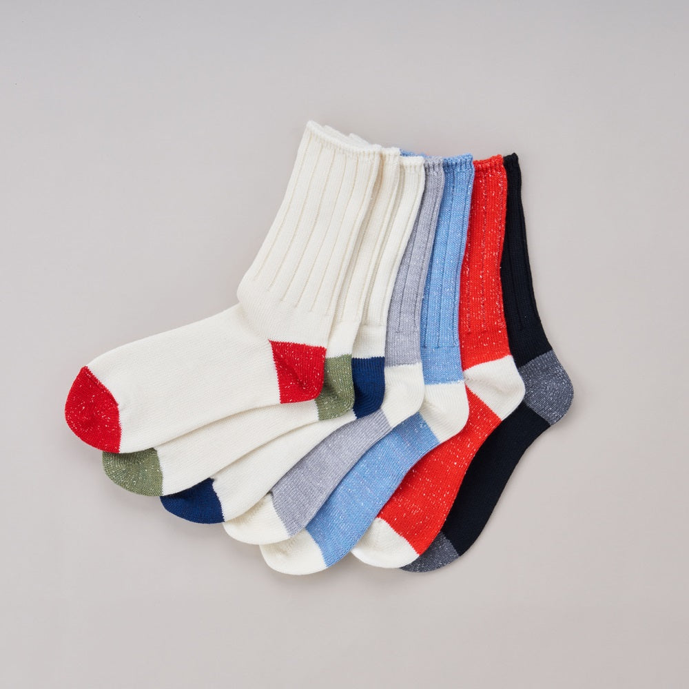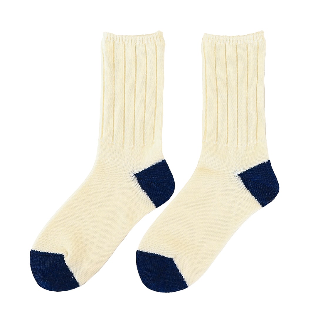 つま先とかかとが彩られた、カジュアルなリブバイカラー靴下。