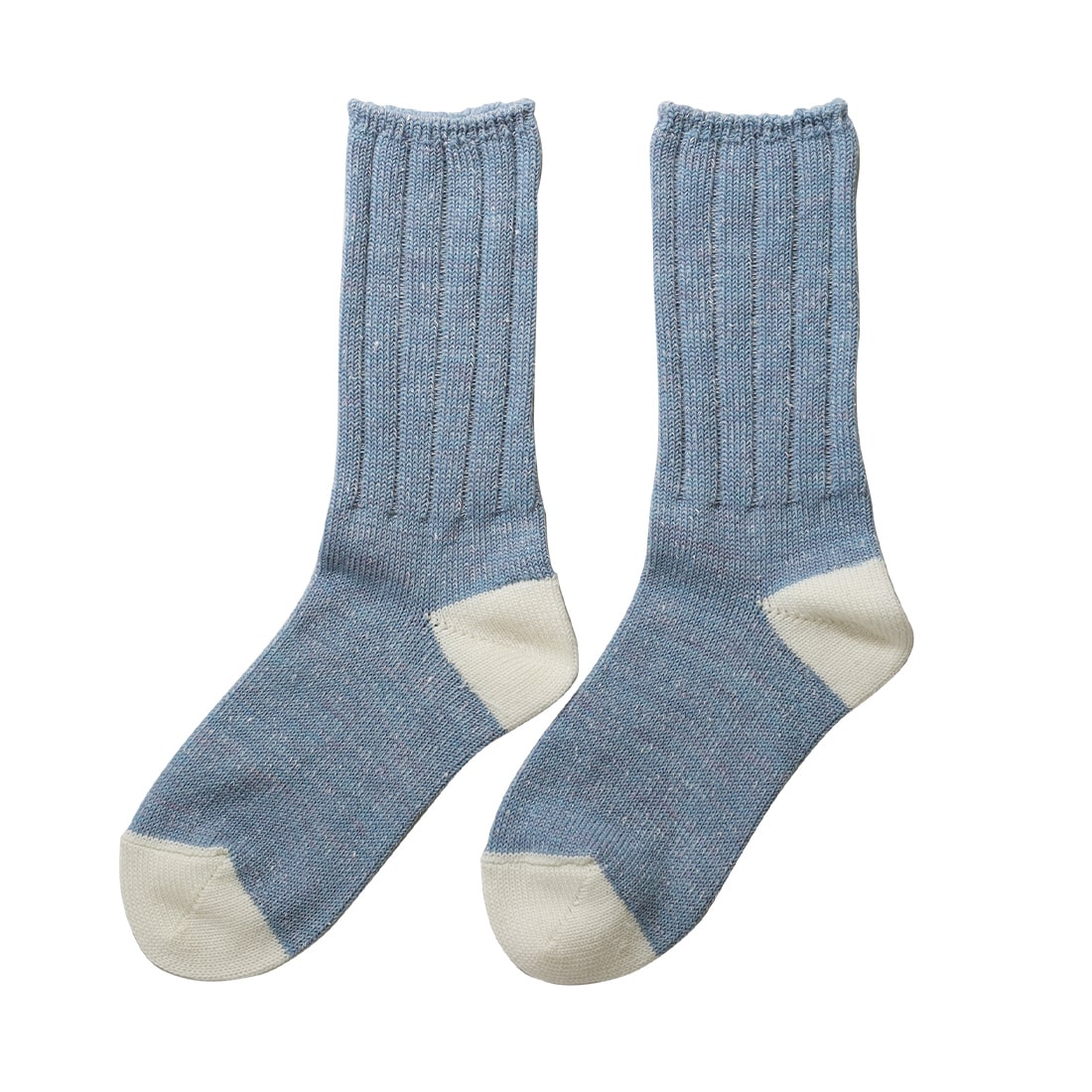 くらしきぬにはシンプルなデザインが多いですが、このバイカラー靴下は、シンプルな中にも遊び心が垣間見えるデザイン。