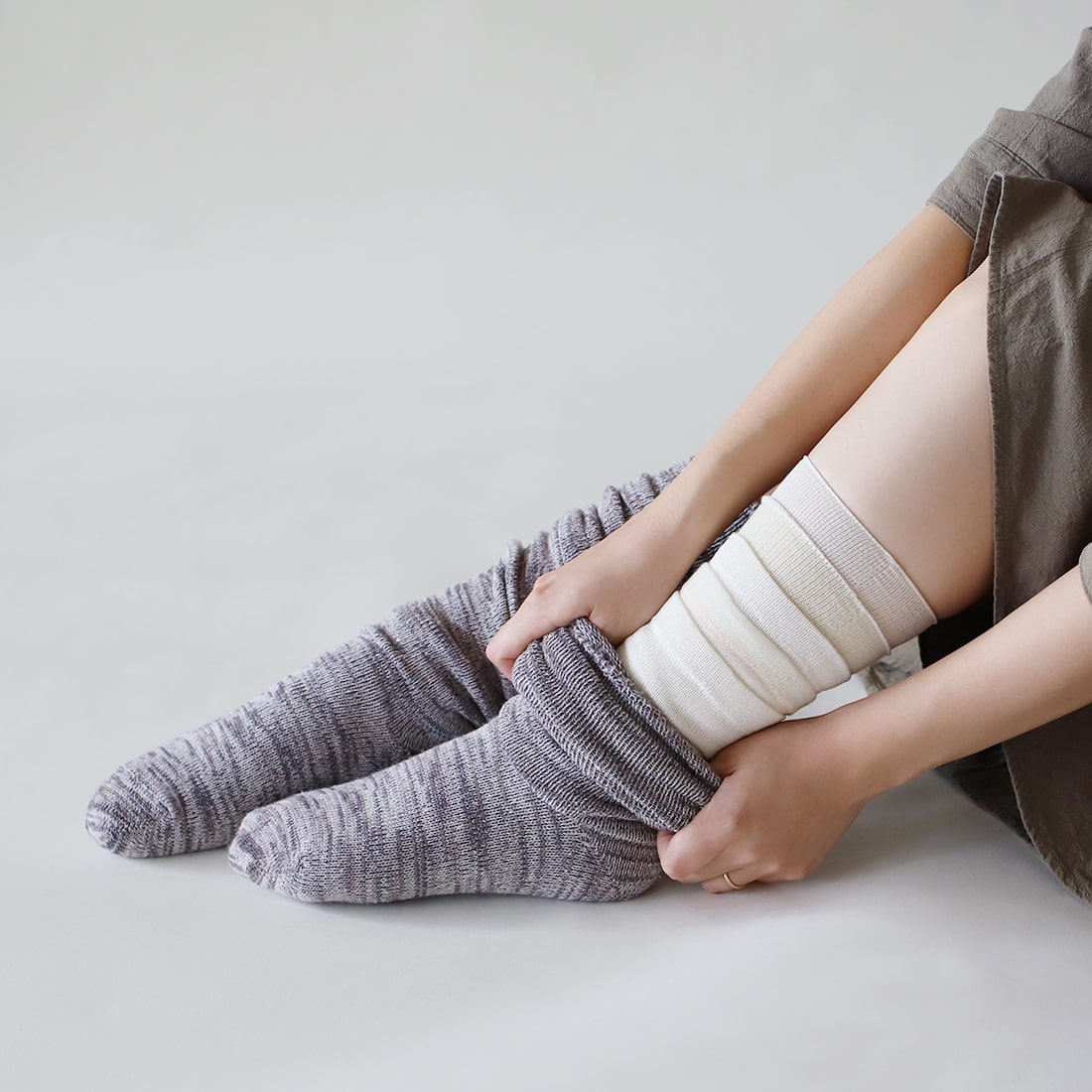 くしゅっとたるませて履いたり、ひざ上まで伸ばしてタイツ風に履いたりと、