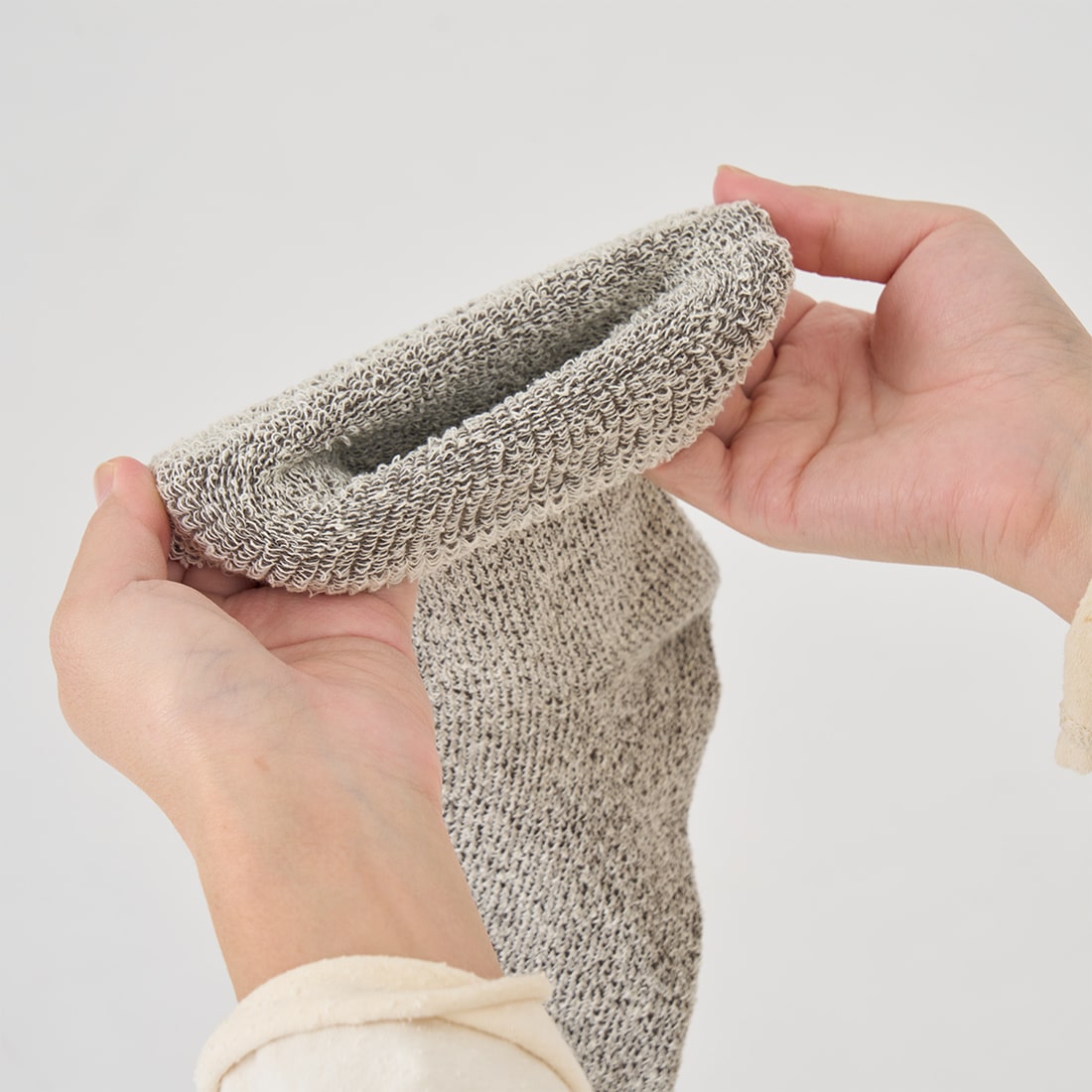 シルクとウールの心地よさを1枚で実感いただける、くらしきぬのパイル靴下。