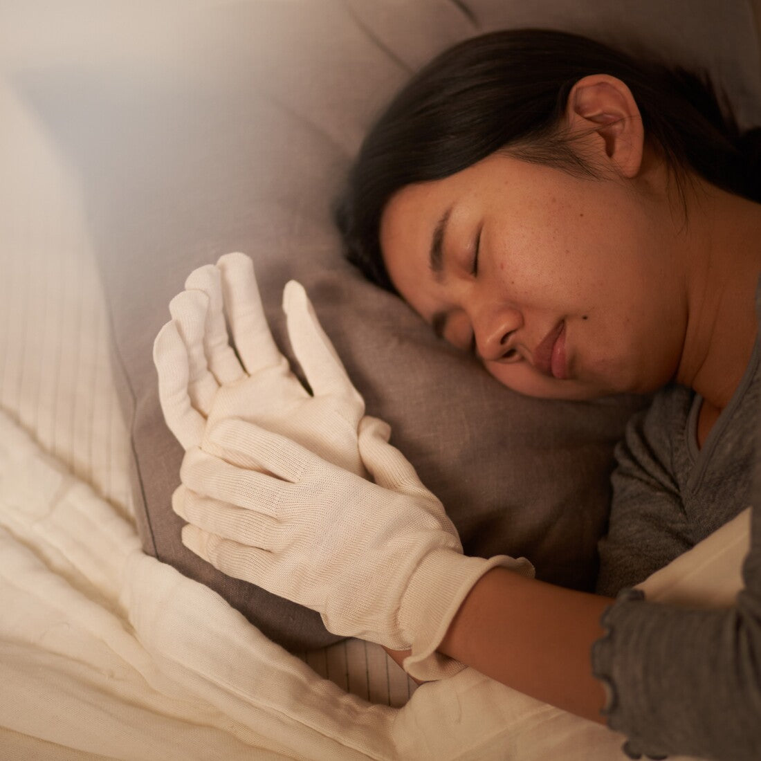 このシルク手袋は、眠りの質を上げたいと悩んでいる人の役に立ってくれるかもしれません。