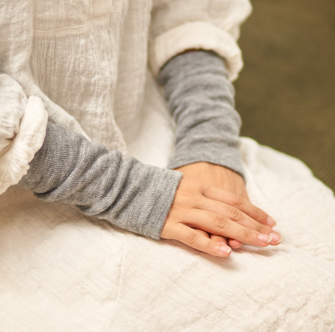 コートなどのアウターとトップスの間に風が入り込むとぐっと冷えを感じますが、手首にウォーマーを付けていればそんな心配もありません。