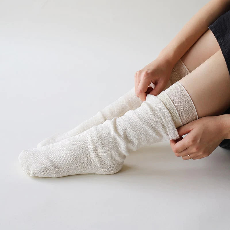 「冷えとり靴下」とは、シルクと天然繊維の靴下を交互に重ねて履く靴下のこと。