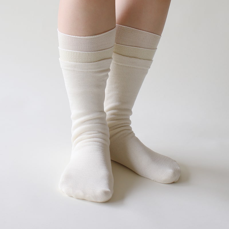基本の重ね履きに温かさをプラスしたい時は、このシルク先丸靴下とウール先丸靴下を組み合わせるのがおすすめです。