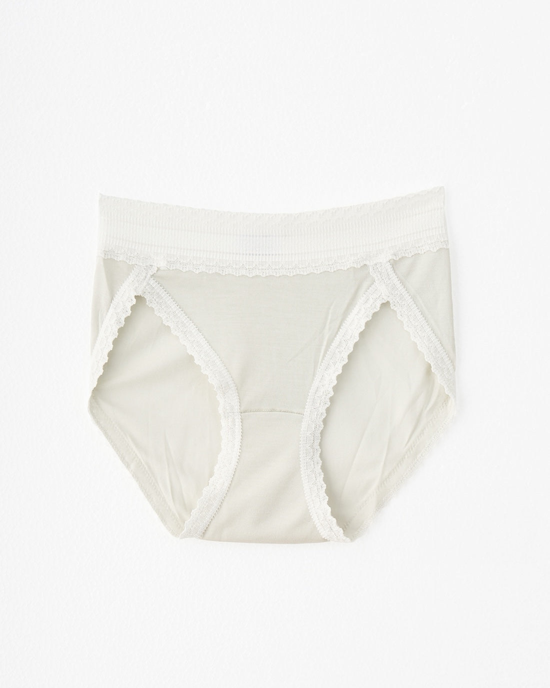 股上(はきこみ丈)が深めで、たっぷりのシルク生地がお尻全体とそけい部をやさしく包み込みます。