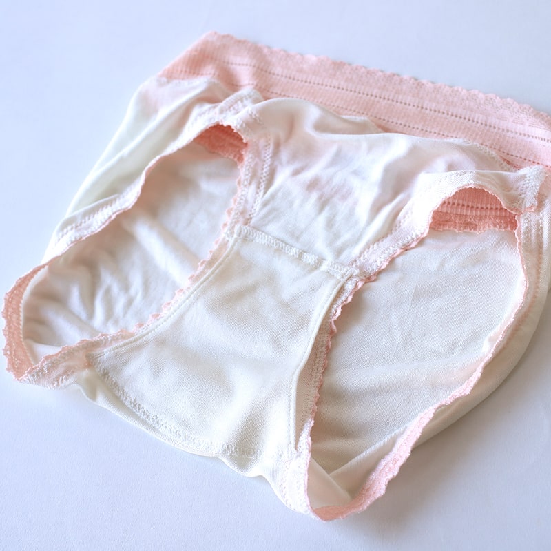 股上(はきこみ丈)が深めで、たっぷりのシルク生地がお尻全体とそけい部をやさしく包み込みます。